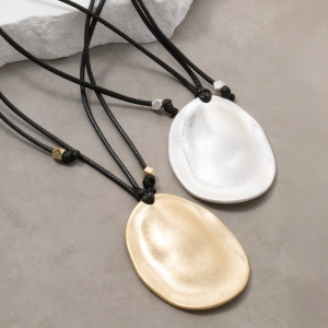 Adjustable Cord Oval Metal Disc Pendant Necklace