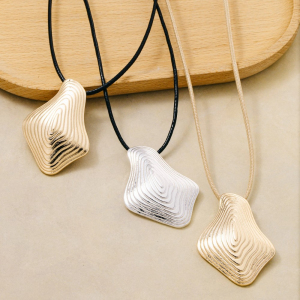 Gold Abstract Pendant Cord Necklace