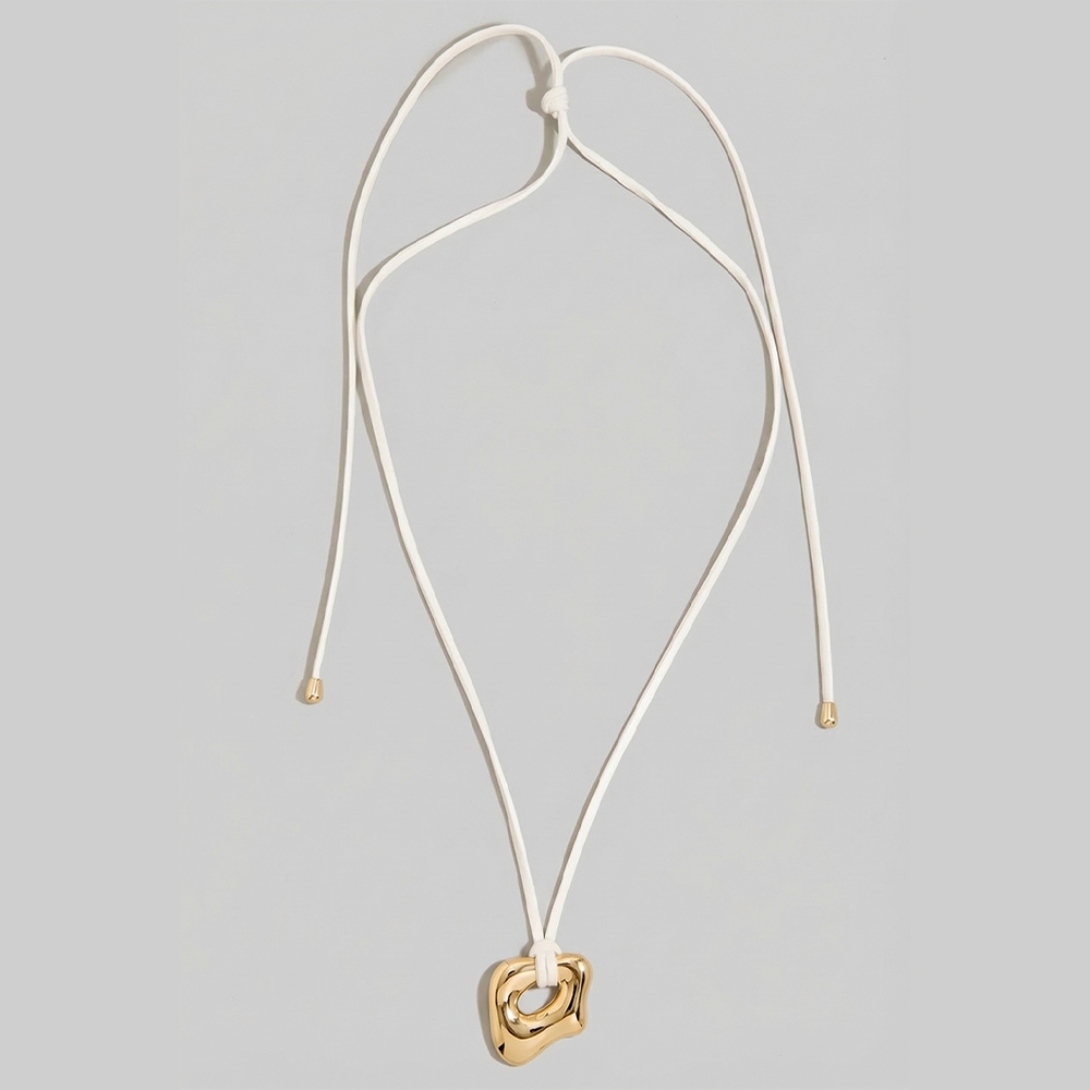 Make a statement, this pendant necklace emanates an elegant abstract gold pendant adjustable cord necklace design. Transform your outfit into a fashion masterpiece with this versatile pendant necklace, an essential for the style-conscious individual. This item is sold in packs of 12.