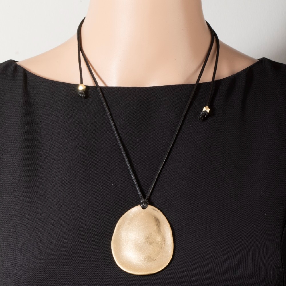 • Perfect for any fashion-forward individual, this pendant necklace boasts a magnificent adjustable cord oval metal disc design. Master the art of accessorizing with this versatile pendant necklace, a key element for achieving a chic and polished look. Available in G, S. This item is sold in packs of 1.