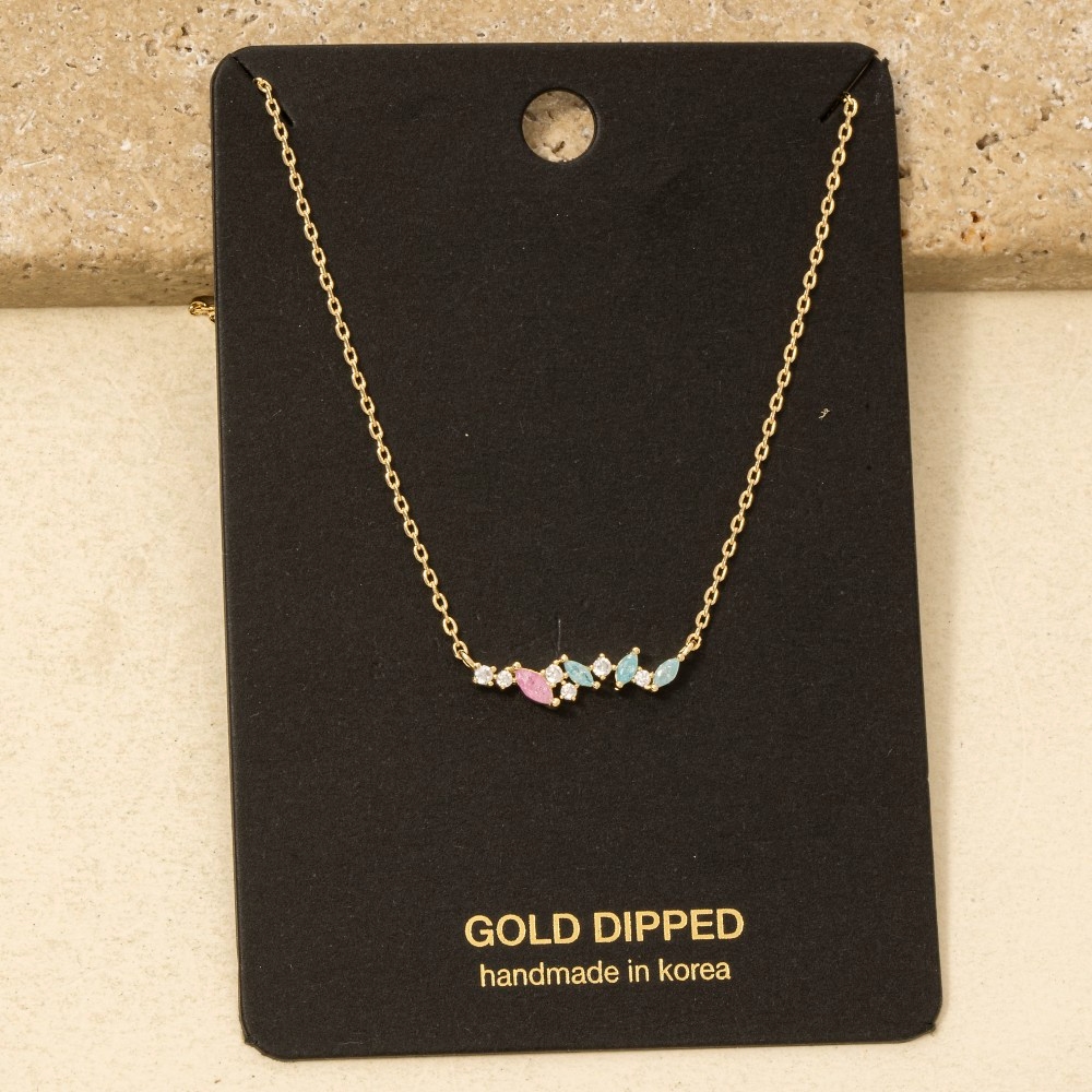 Gold Dipped Cz Pendant Enamel Accent Necklace