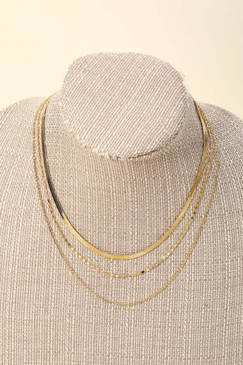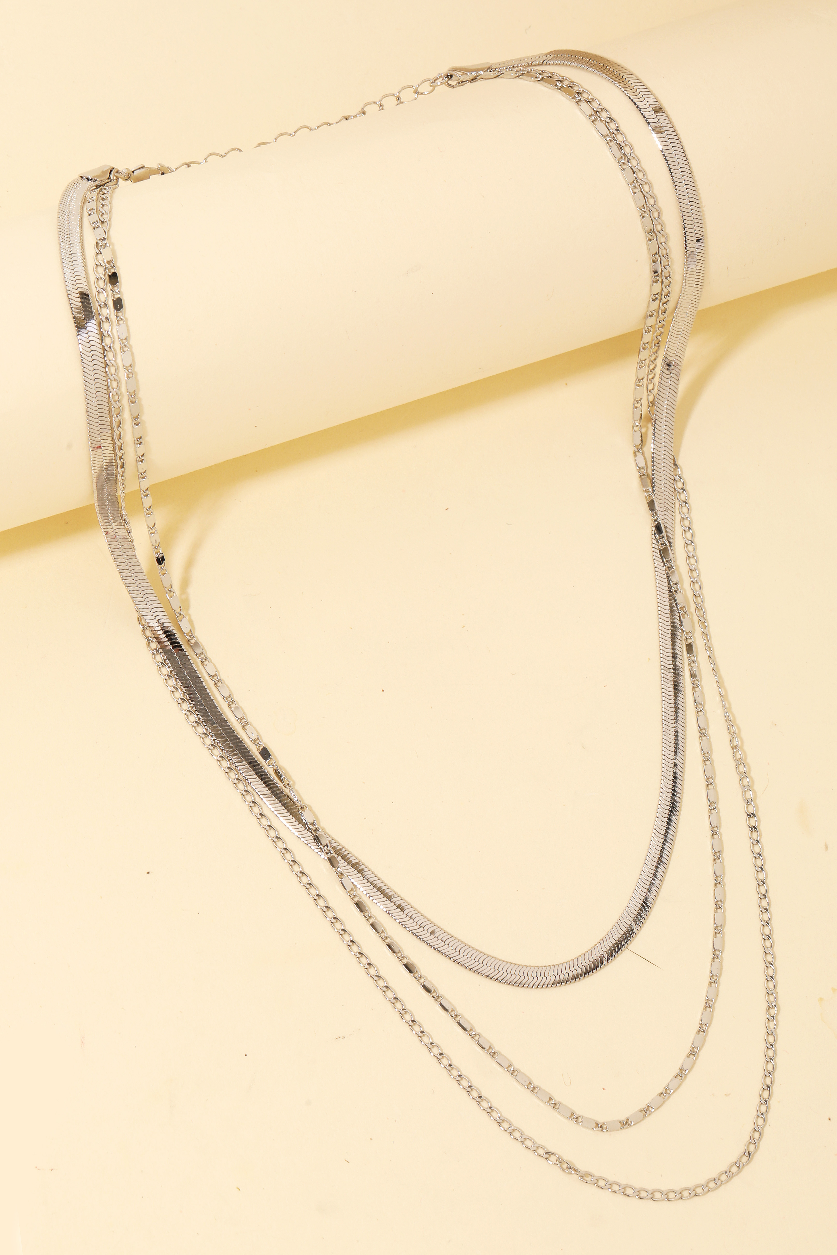 - This season's hottest accessory, this necklace comes with a special assorted layered triple chain link design. This accessory is the perfect way to add a touch of elegance to any outfit. Available in G and S. This item is sold in packs of 1.