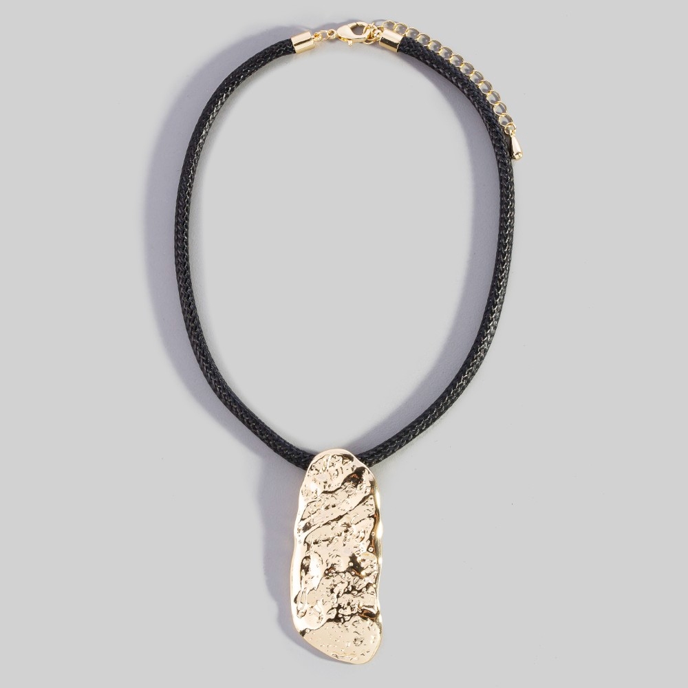 Elevate any look, this pendant necklace embodies a sophisticated braided cord hammered gold pendant statement necklace design. Redefine your wardrobe with this versatile pendant necklace, a timeless addition that brings an air of sophistication to any look. Available in G. This item is sold in packs of 1.