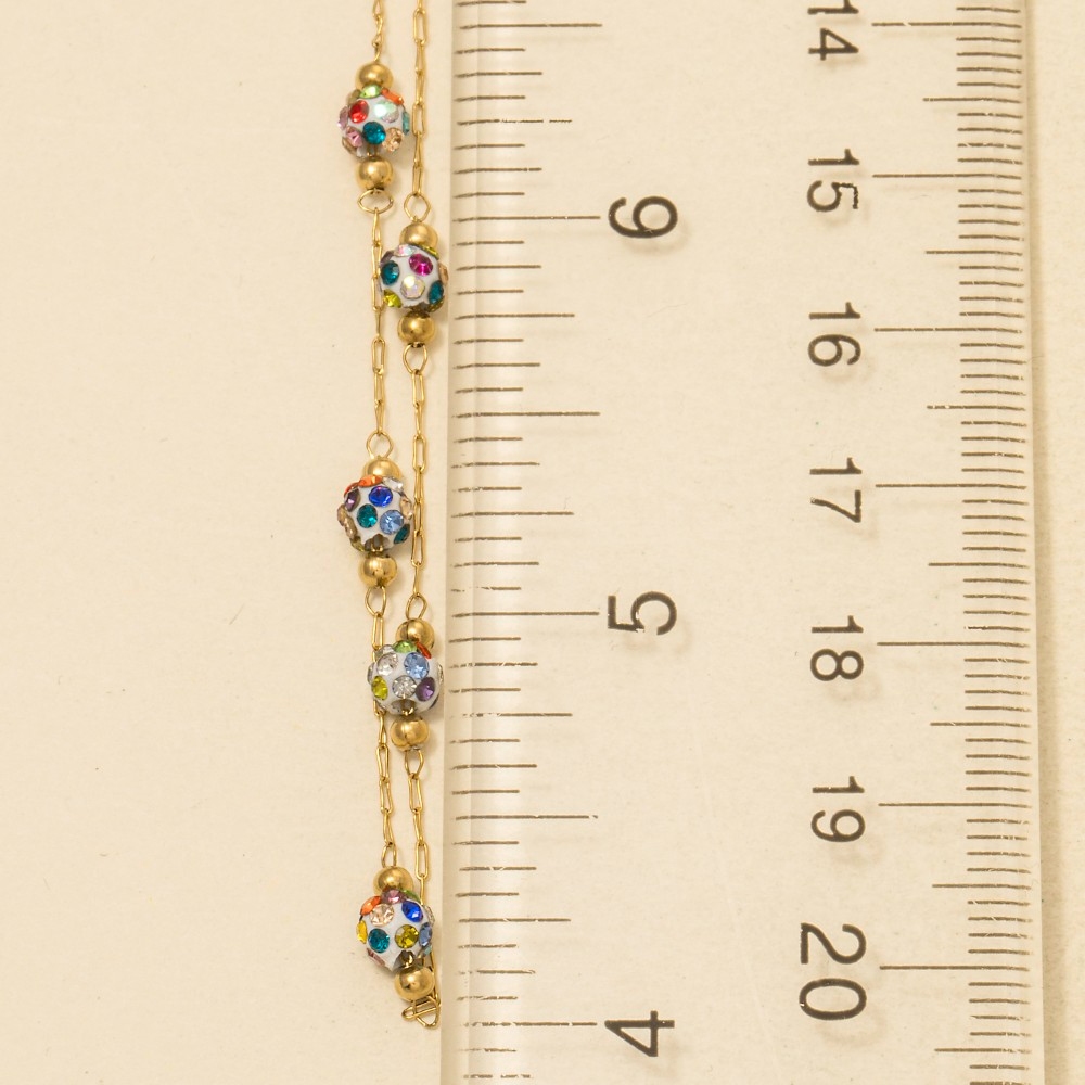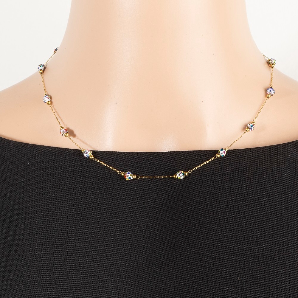 This piece is perfect for those who want to showcase their unique style, this necklace exudes a refined colorful studded ball bead station design. Discover a new level of fashion versatility as this necklace effortlessly elevates the allure of your attire. Available in G. This item is sold in packs of 1.