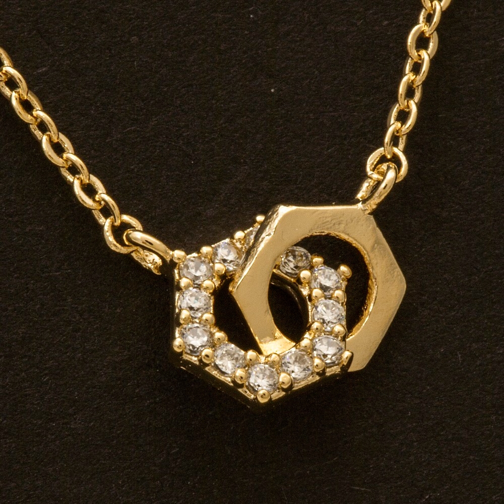 • This piece is both timeless and contemporary, this necklace possesses a fine cz hexagonal nuts charm design. This item is perfect for adding some color and vibrancy to any outfit. Available in     . This item is sold in packs of 1.