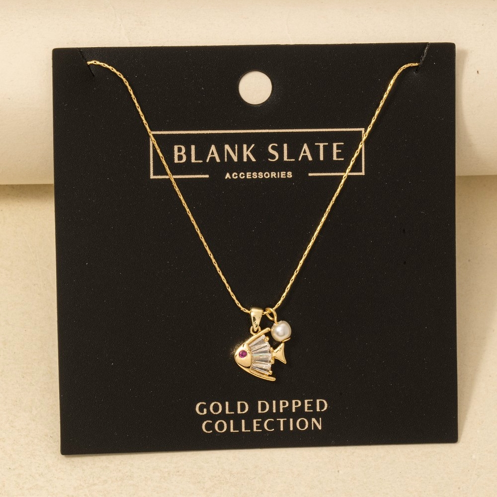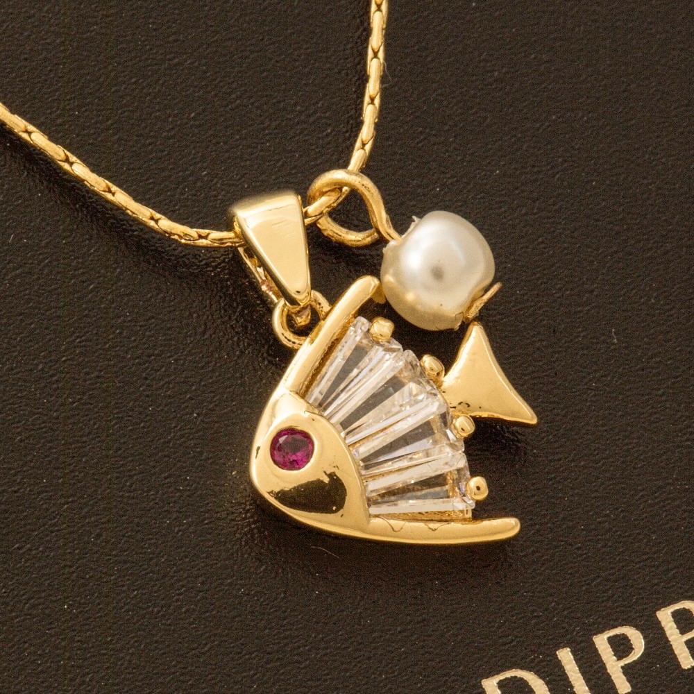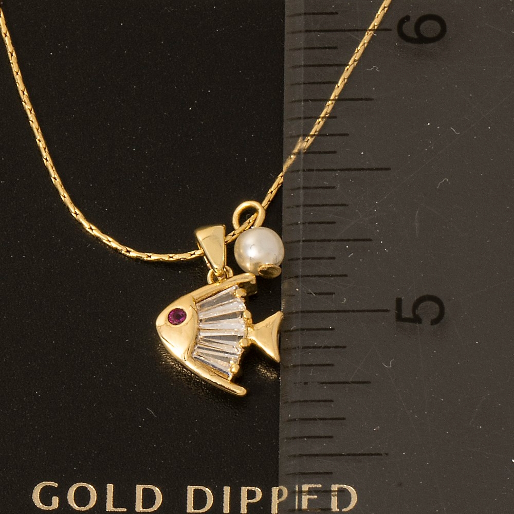 • Make a bold statement, this necklace boasts a magnificent cz pearl fish pendant design. This necklace is a great way to add some glamour and sophistication to your outfit. Available in G. This item is sold in packs of 1.