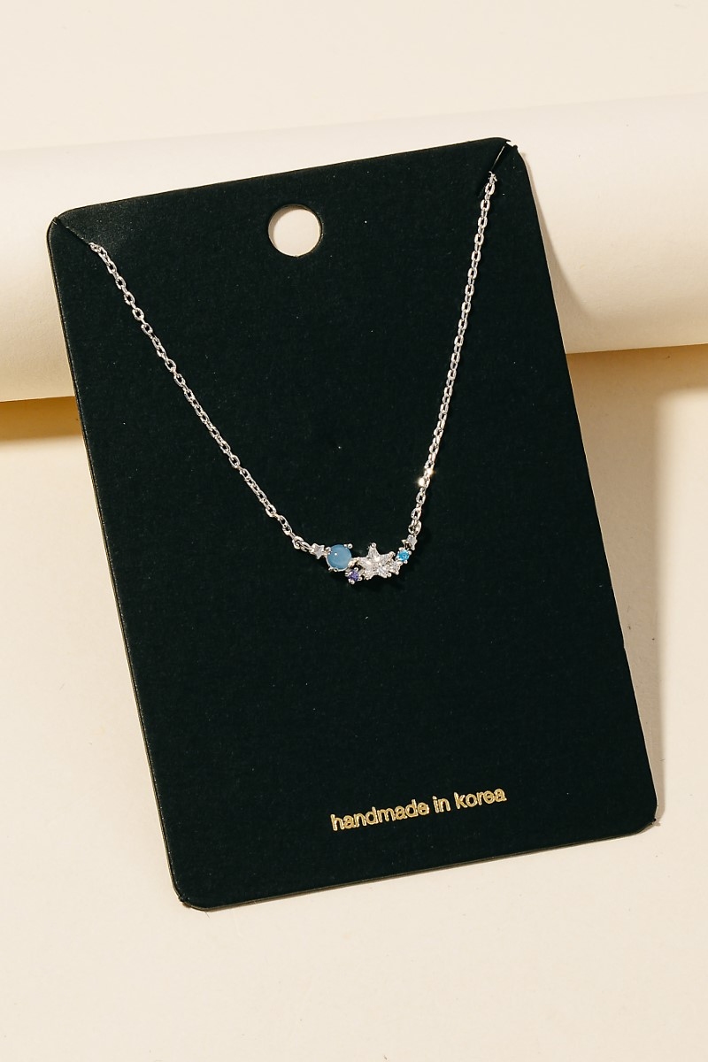 Upgrade your necklace game, this necklace carries a charming cz star cluster pendant design. It also includes a cubic zirconia. Perfect for dressing up or down, this versatile necklace adds a touch of sophistication to any look. Available in G and S. This item is sold in packs of 1.