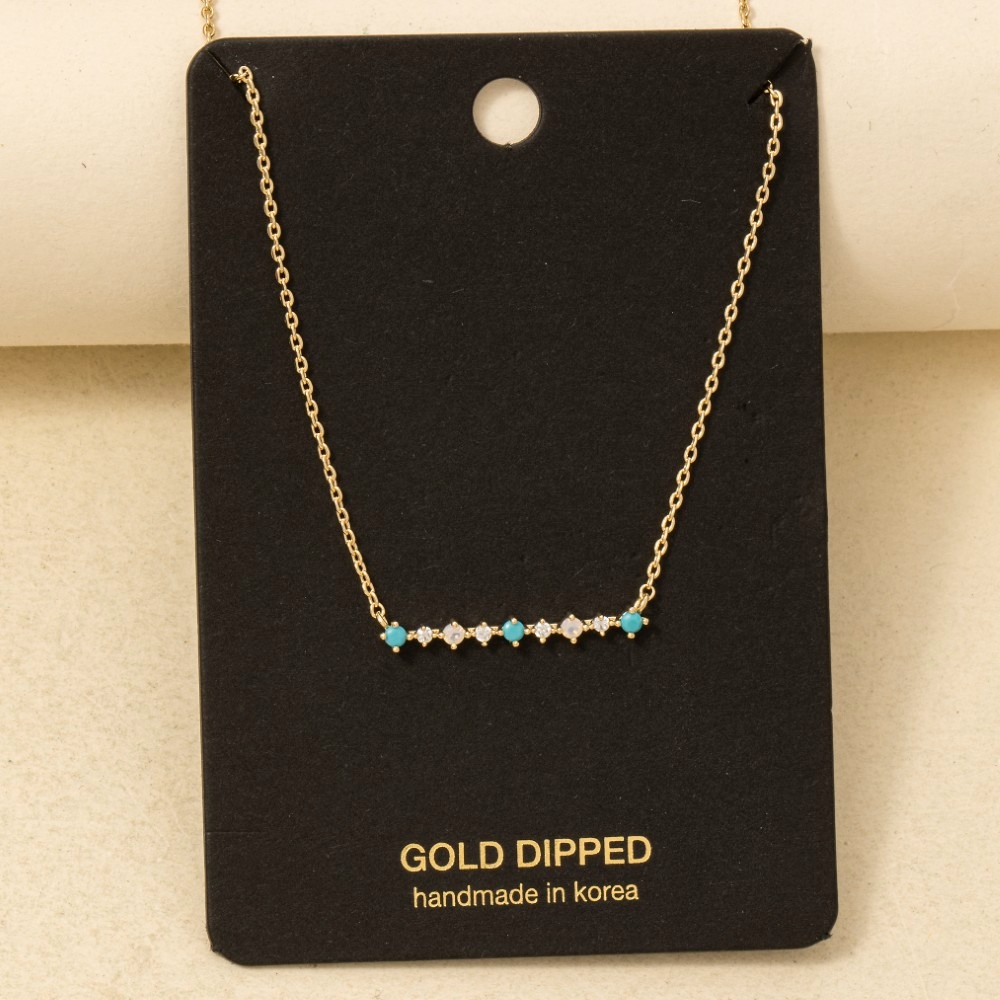 Gold Dipped Bar Pendant Enamel Accent Necklace