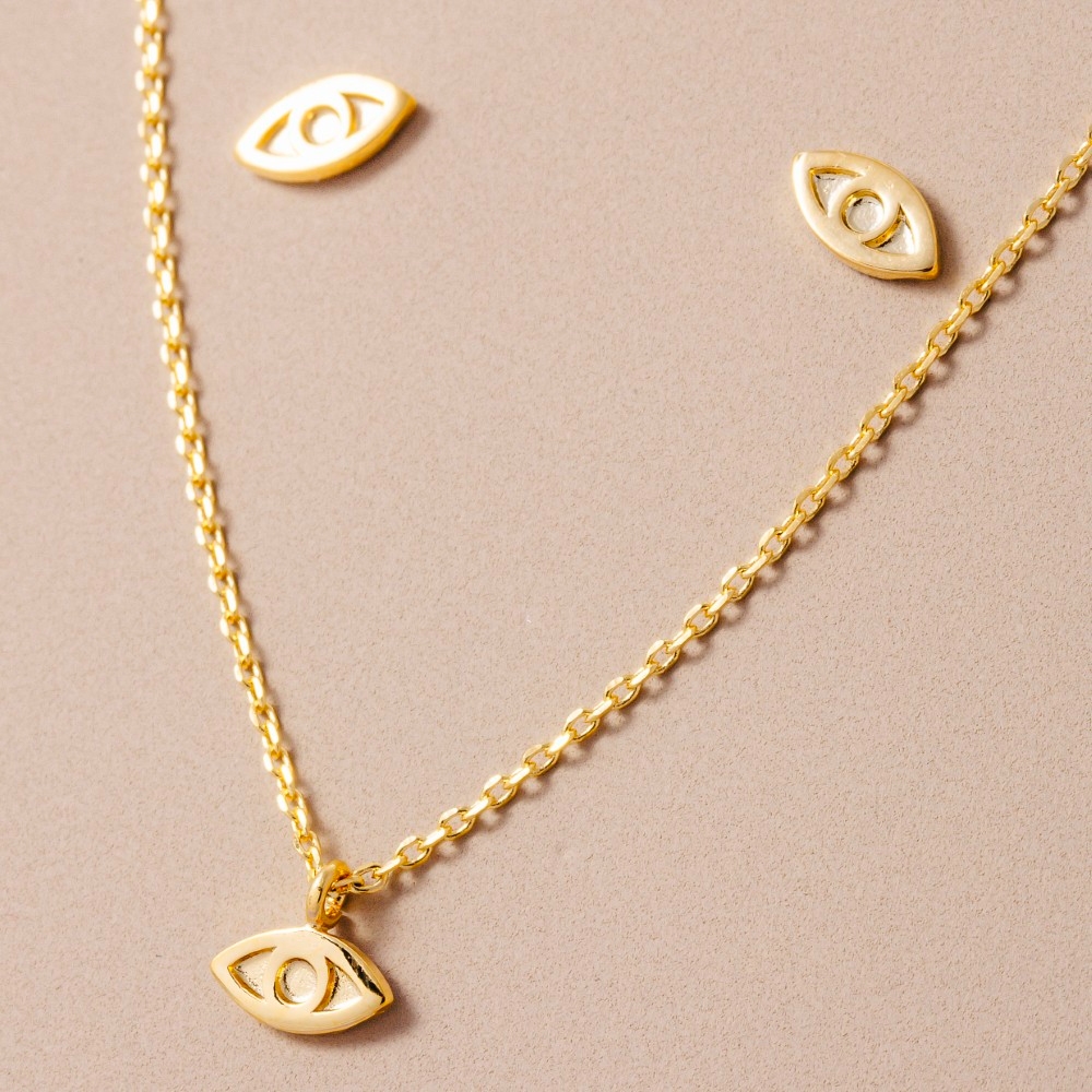 Perfect for any occasion, this pair of stud earrings reveals an intricate eye and pendant necklace set design. A versatile pair of stud earrings that's perfect for any occasion, adding a touch of elegance and style to any outfit. Available in G. This item is sold in packs of 1.