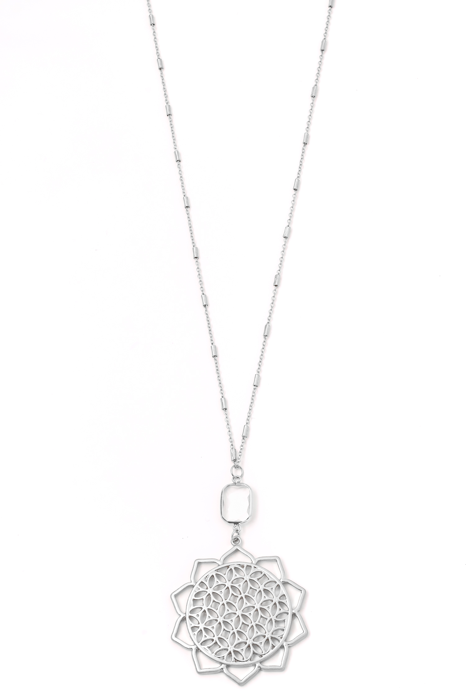 Rhinestone Studded Flower Pendant Necklace
