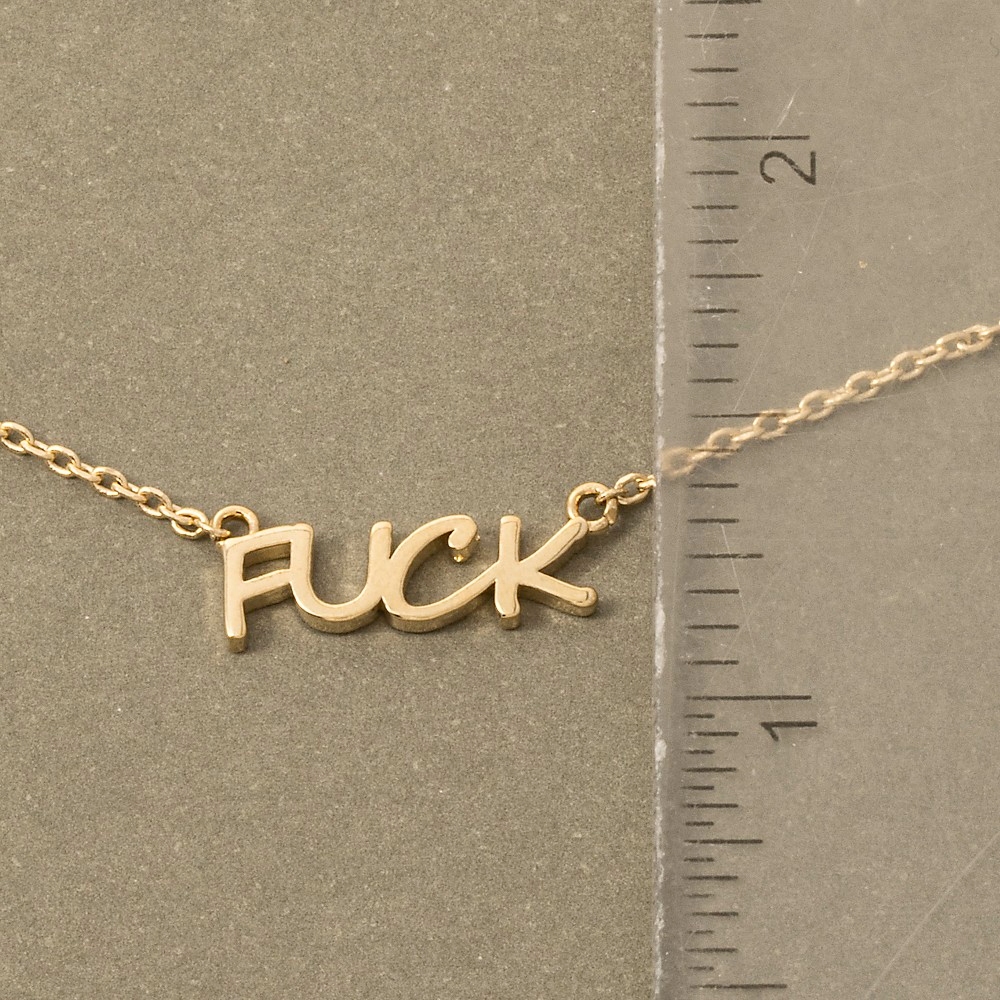Perfect for any occasion, this necklace emanates an elegant fuck pendant design. Transform your outfit into a fashion masterpiece with this versatile necklace, an essential for the style-conscious individual. Available in GD, RH. This item is sold in packs of 1.