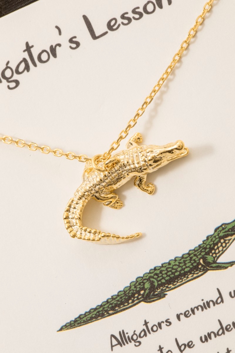 The perfect way to complete any outfit, this necklace flaunts a luxurious gold dipped alligator pendant design. Experience the transformative power of this versatile necklace, effortlessly enhancing the overall aesthetic of your outfit. Available in GD. This item is sold in packs of 1.