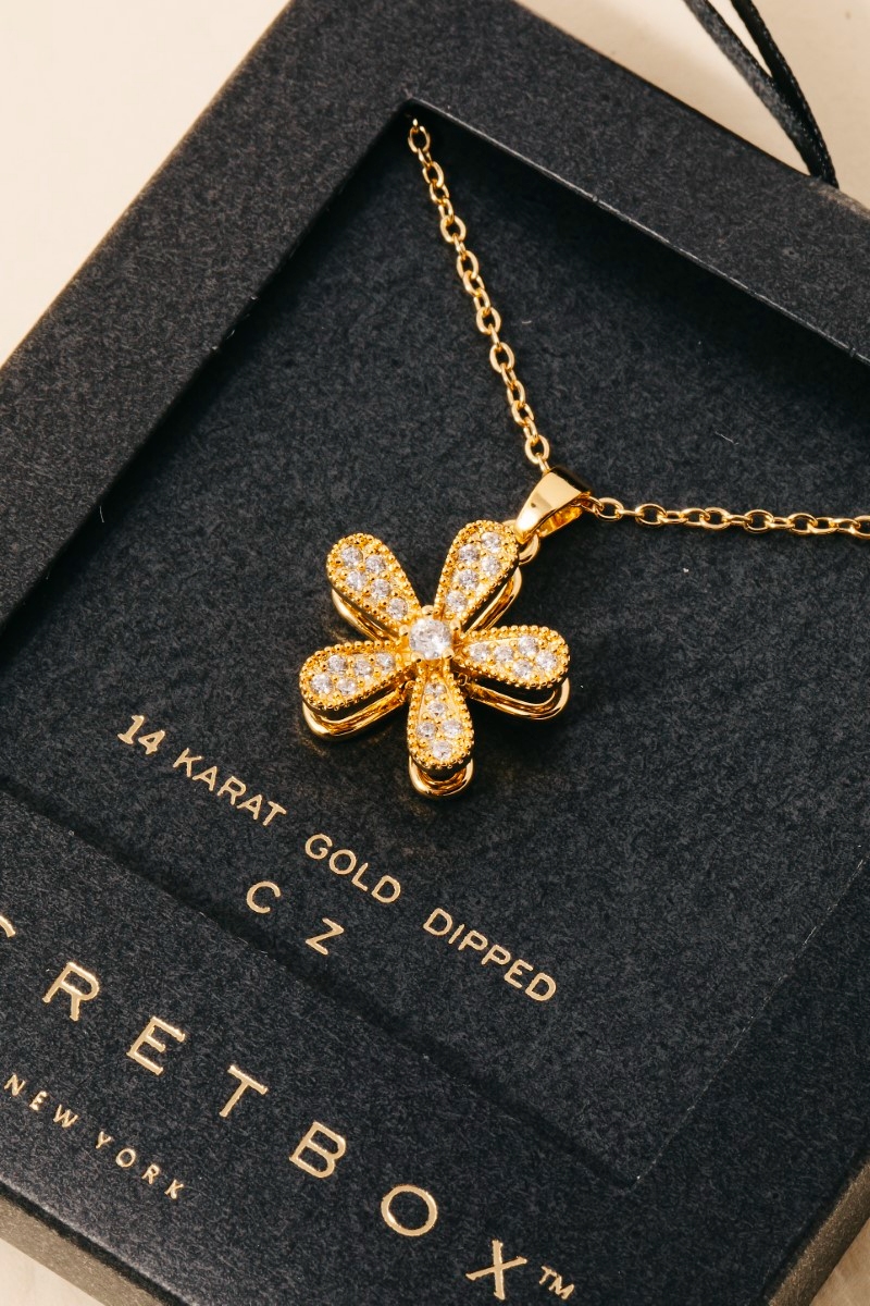 • Perfect for any fashion-forward individual, this necklace shows off a distinctive gold dipped cubic zirconia cluster flower pendant design. Unlock endless styling possibilities with this versatile necklace, creating a signature look that speaks volumes. Available in GD. This item is sold in packs of 1.