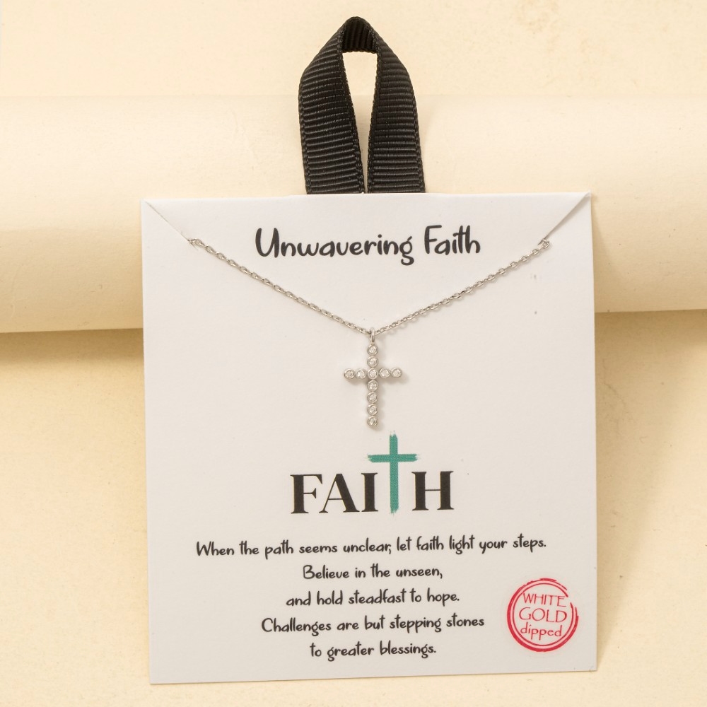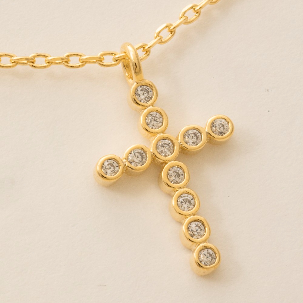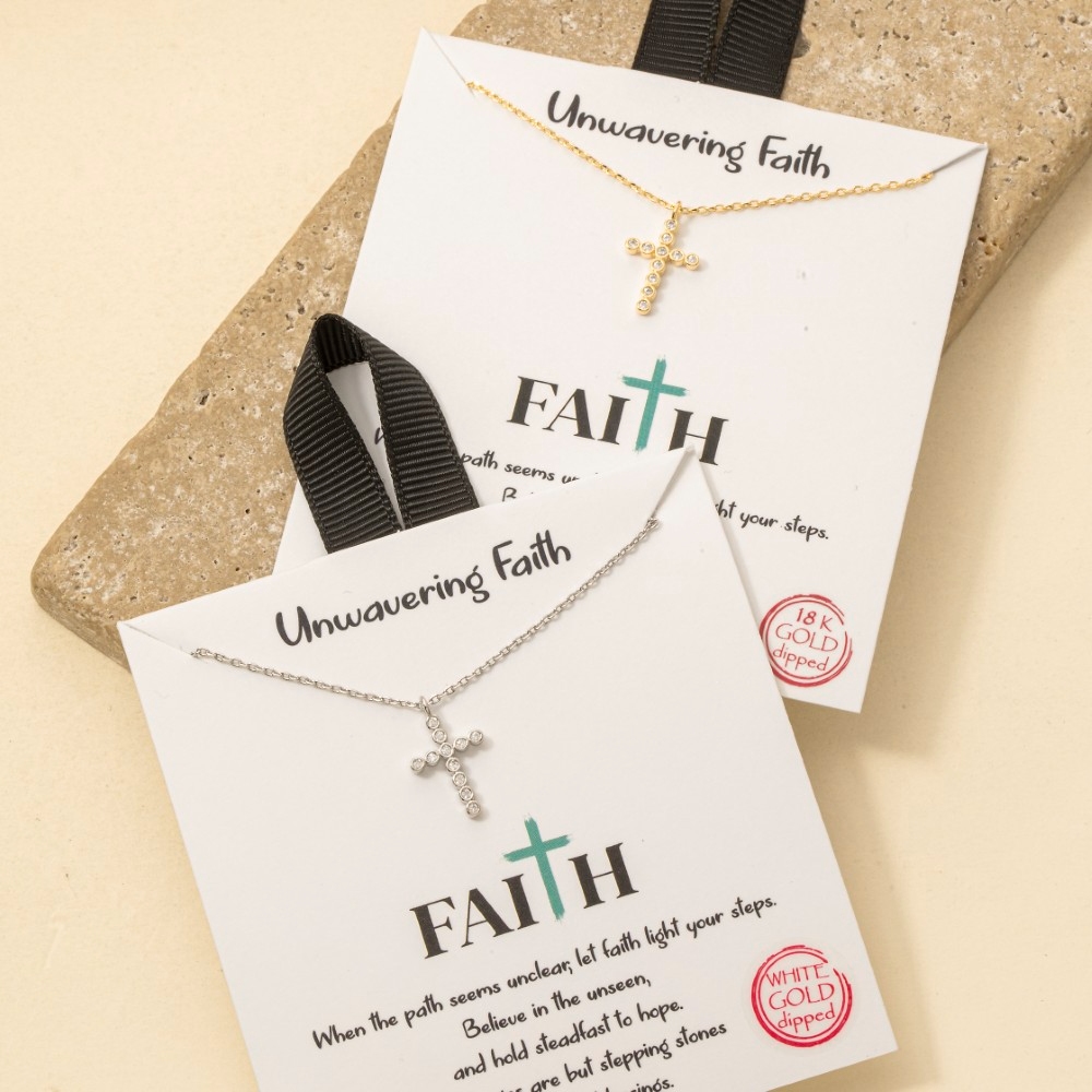 • The epitome of sophistication and style, this necklace encompasses a grand gold dipped cubic zirconia pave dainty cross pendant design. Make a lasting impression with this versatile necklace, a subtle yet impactful addition to your fashion repertoire. Available in GDCRY, RHCRY. This item is sold in packs of 1.