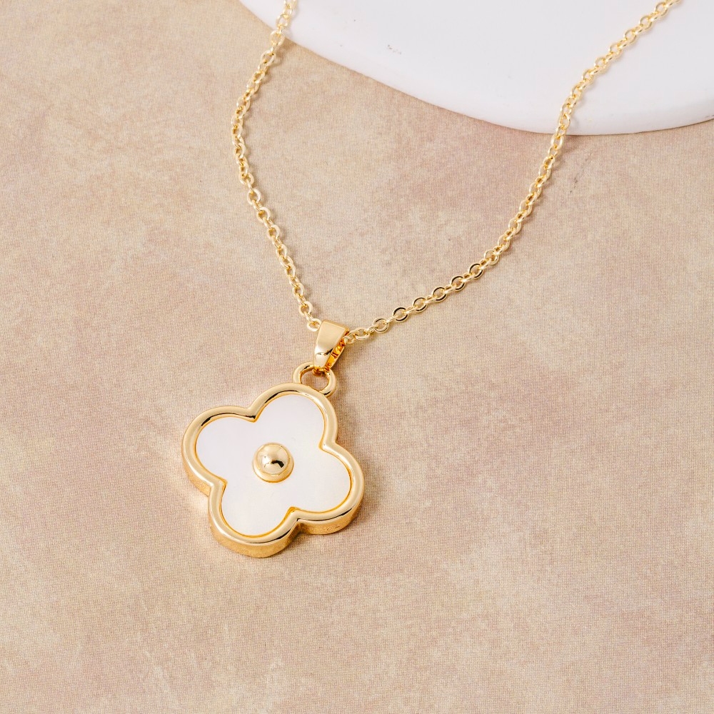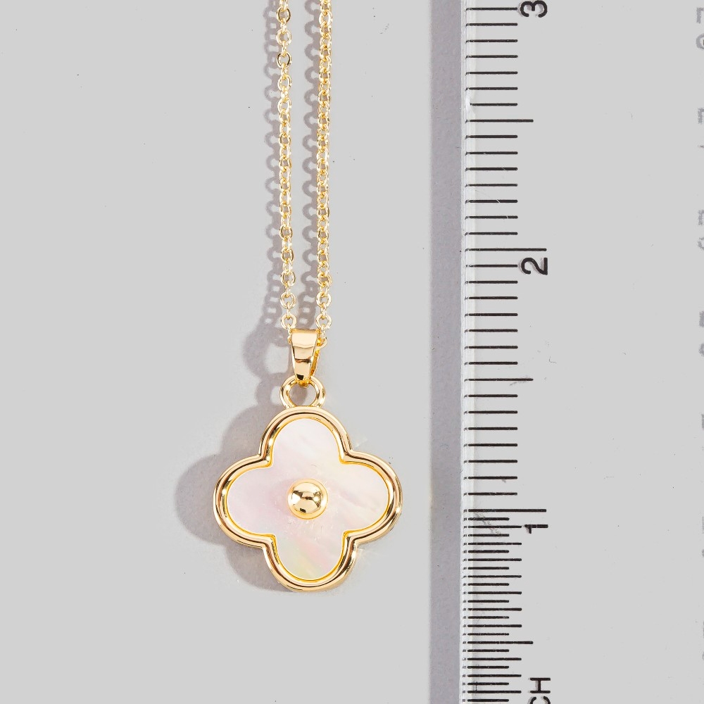 A stunning addition to any jewelry collection, this pendant necklace emanates an elegant gold dipped mother of pearl clover design. Redefine your wardrobe with this versatile pendant necklace, a timeless addition that brings an air of sophistication to any look. Available in GM. This item is sold in packs of 1.