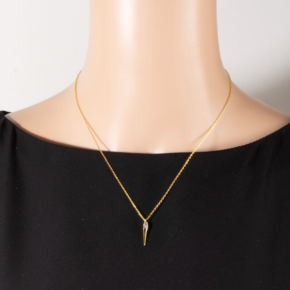 - Bold, daring, and endlessly stylish, this pendant necklace adds a distinctive gold dipped oval cubic zirconia point design. This item is ideal for those who want to add some personality to their wardrobe without being too bold. Available in G, S. This item is sold in packs of 1.