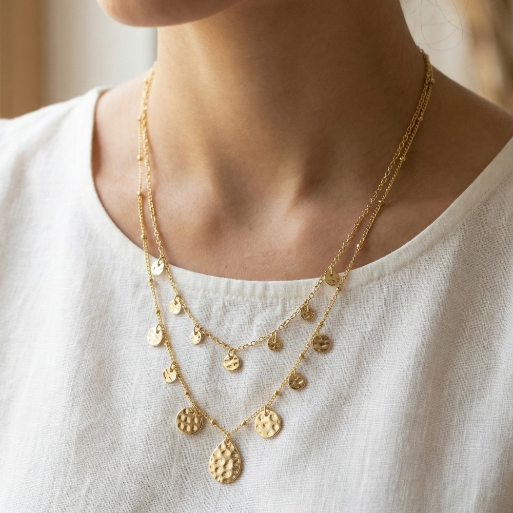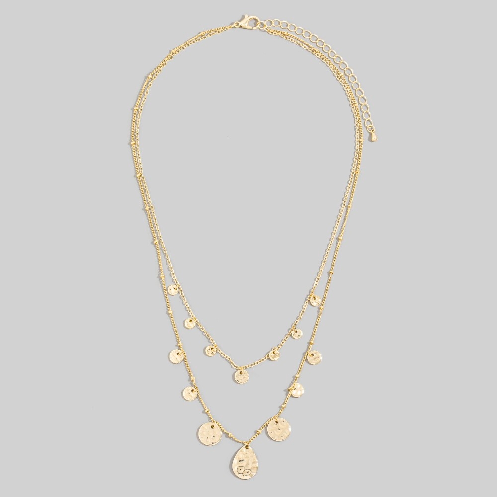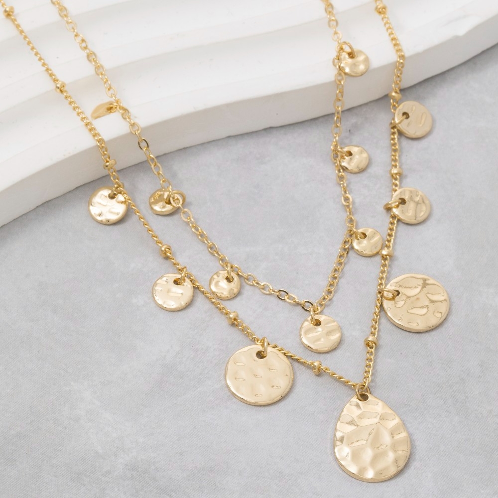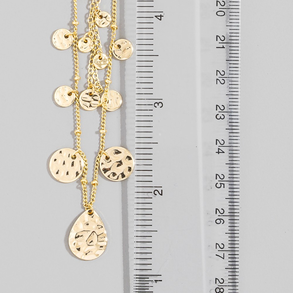 • A bold and daring choice, perfect for those who want to stand out from the crowd, this necklace showcases an alluring hammered coin charms layered chains design. This item is ideal for those who want to add some personality to their wardrobe without being too bold. Available in GD. This item is sold in packs of 1.