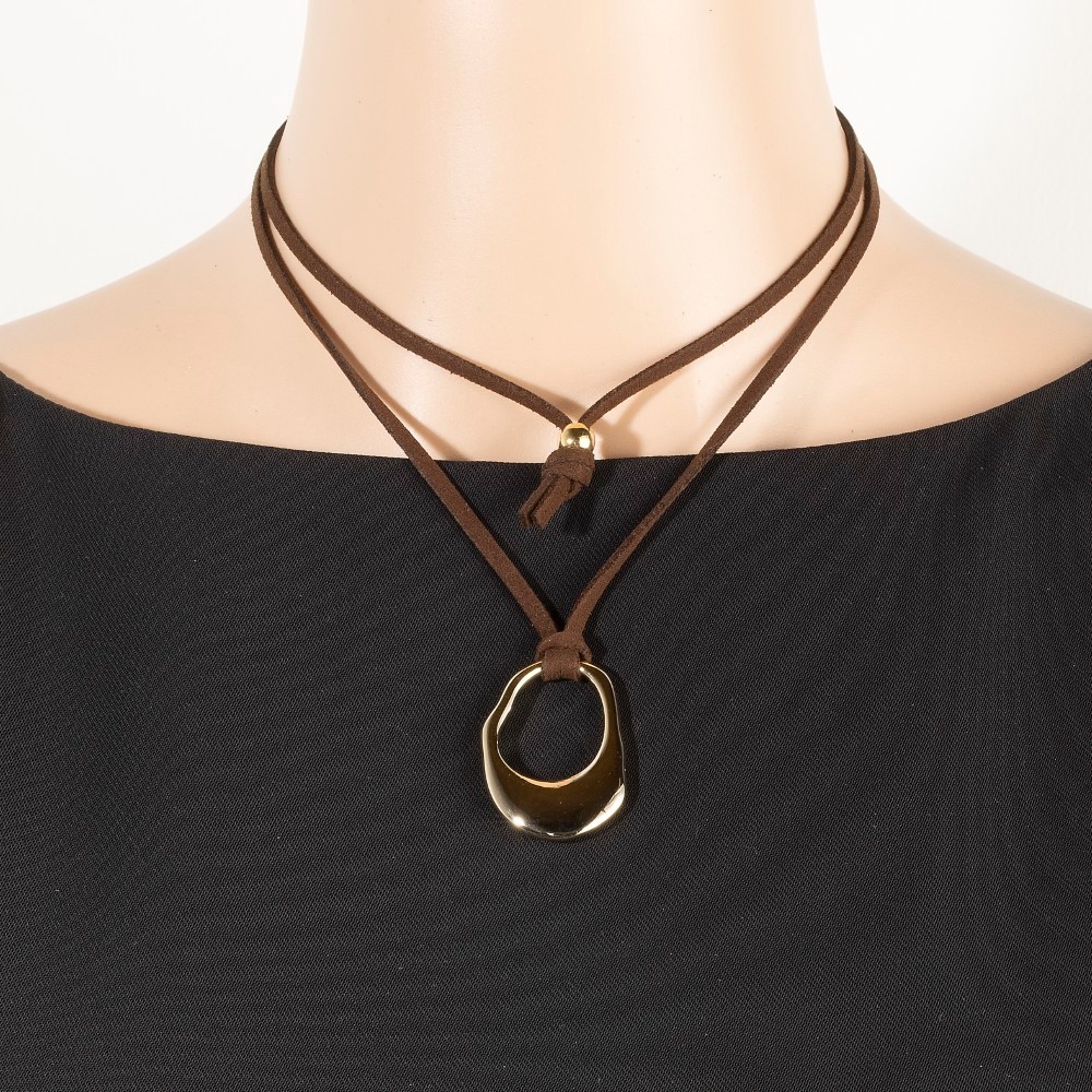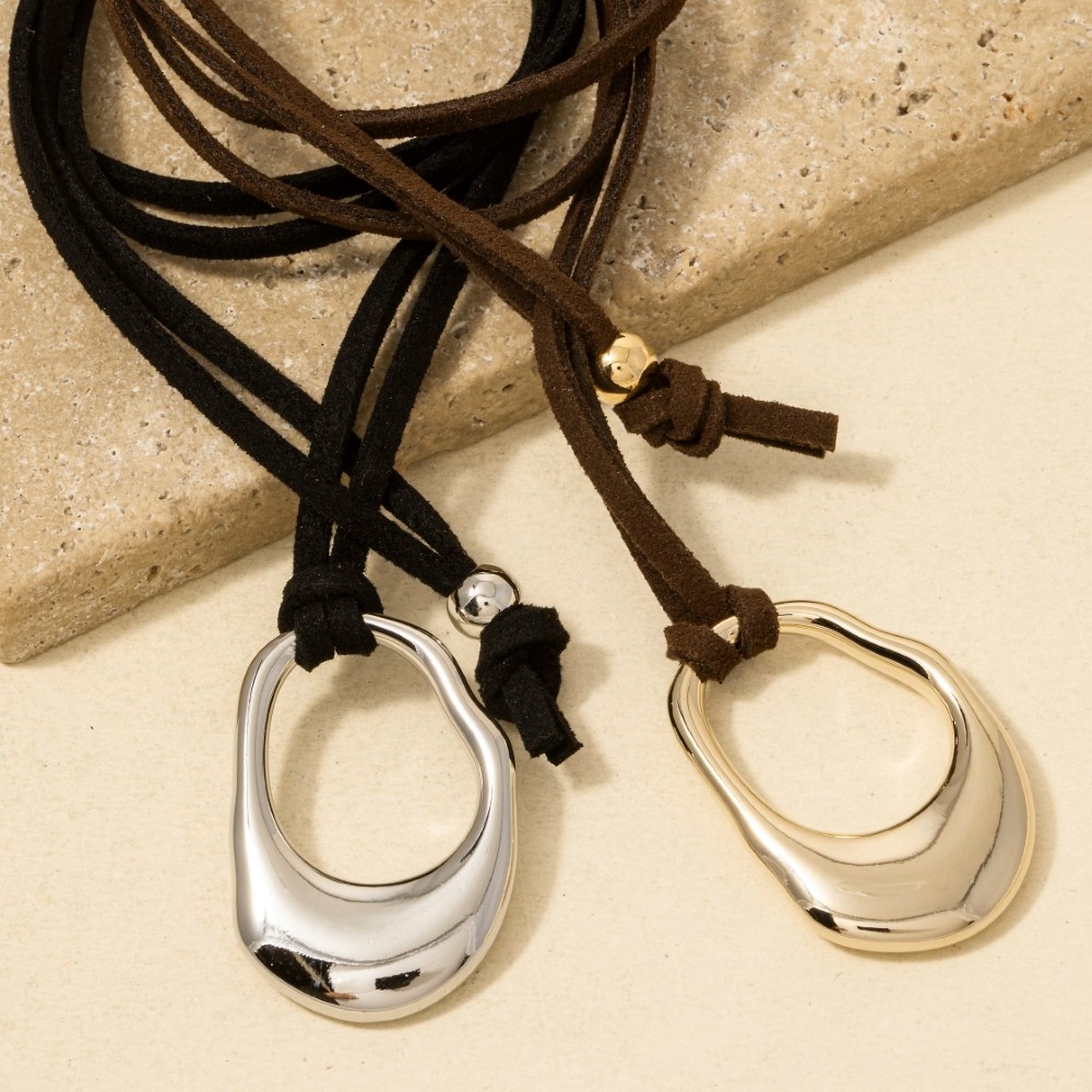 • A bold and daring choice, perfect for those who want to stand out from the crowd, this necklace features a distinct hammered oval faux suede cord design. Elevate your everyday style with this versatile necklace, a simple yet impactful addition to your fashion repertoire. Available in G, S. This item is sold in packs of 1.