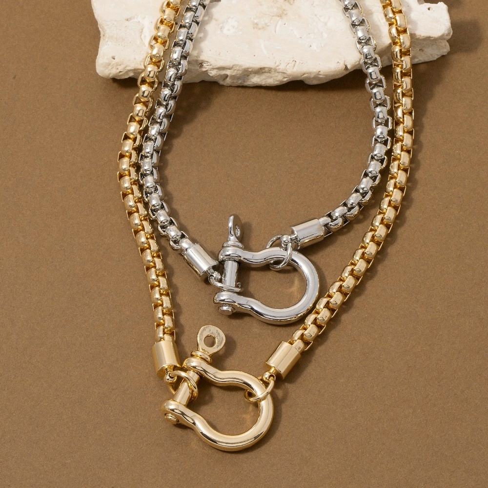 - This piece is designed to be both stylish and functional, this pendant necklace incorporates a remarkable horseshoe shackle design. A must-have pendant necklace that adds a unique flair to any look. Available in G, S. This item is sold in packs of 1.