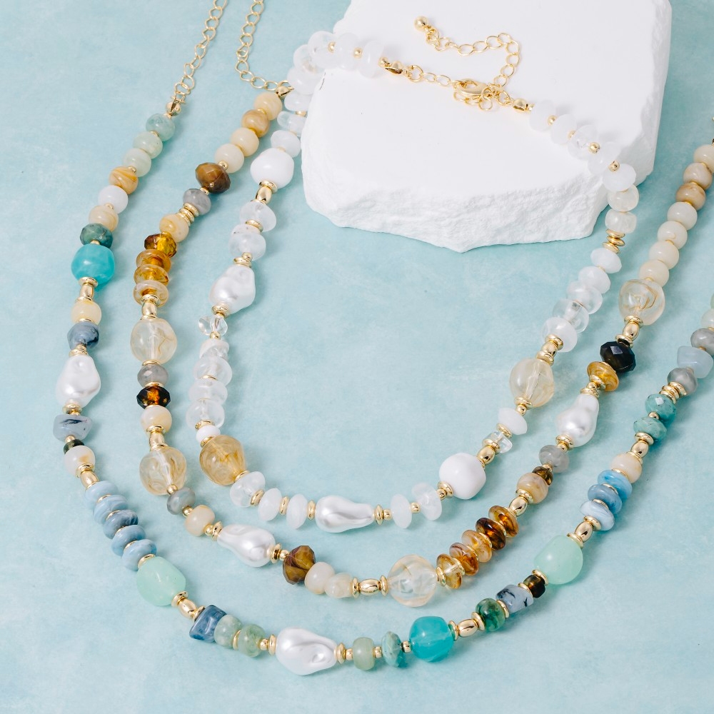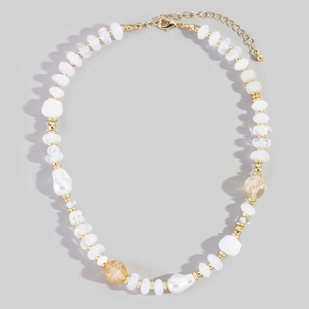 • The perfect way to add some edge to your look, this necklace encompasses a grand intricate mixed beaded design. This item is perfect for anyone who loves to accessorize and add some personality to their outfits. Available in LCTG, LSAG, WHG. This item is sold in packs of 1.
