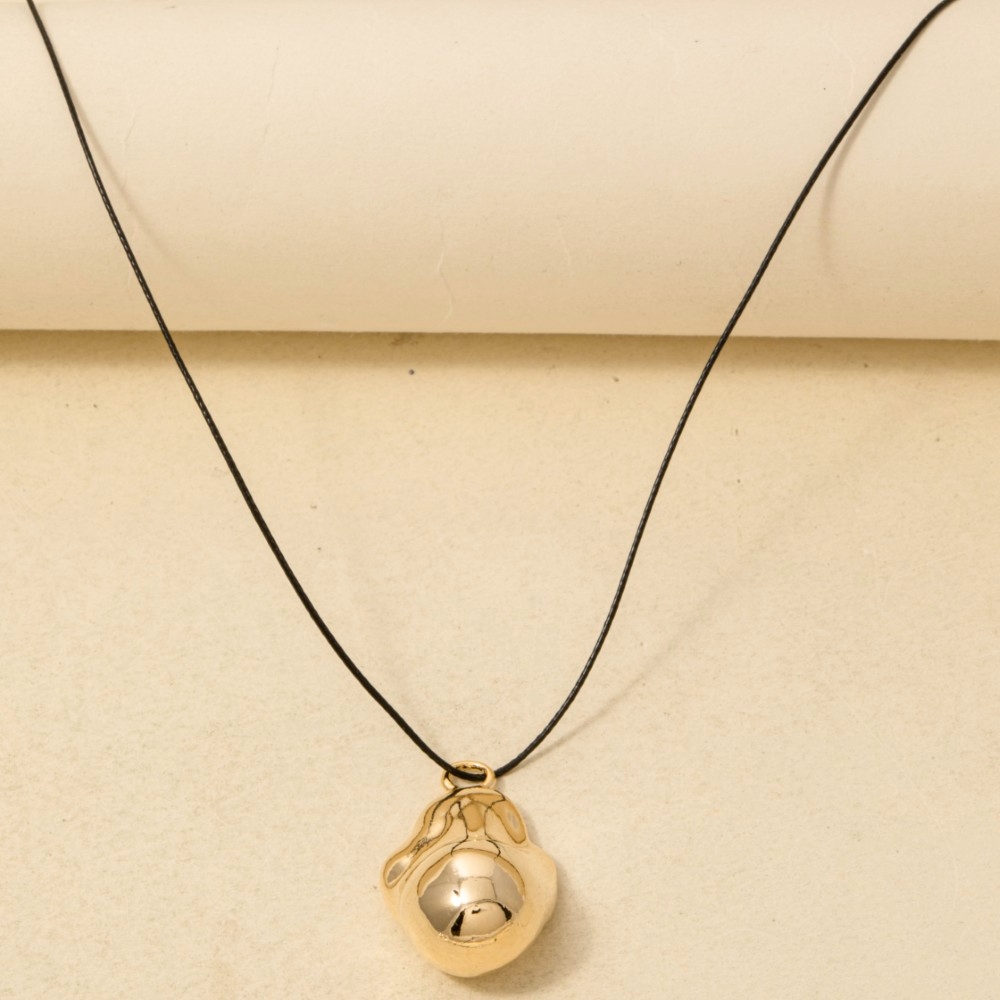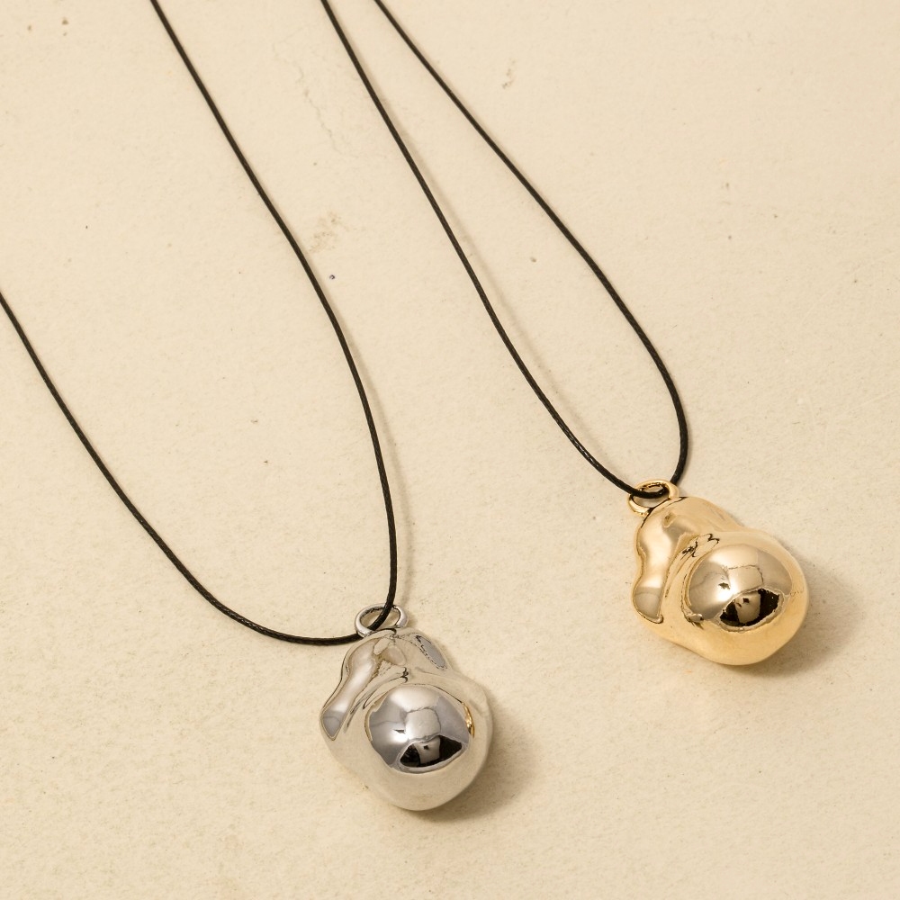 Effortlessly elevate your outfit, this necklace boasts a magnificent irregular shape metallic pendant dainty cord design. Achieve a perfect blend of style and sophistication with this versatile necklace, a fashion-forward choice for any occasion. Available in G, S. This item is sold in packs of 1.