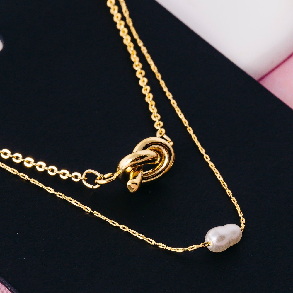 - Add a touch of elegance and glamour to your look, this pendant necklace adds a distinctive layered chain knot and pearl design. Upgrade your fashion game with this versatile pendant necklace, a timeless addition that complements any outfit seamlessly. Available in G. This item is sold in packs of 1.