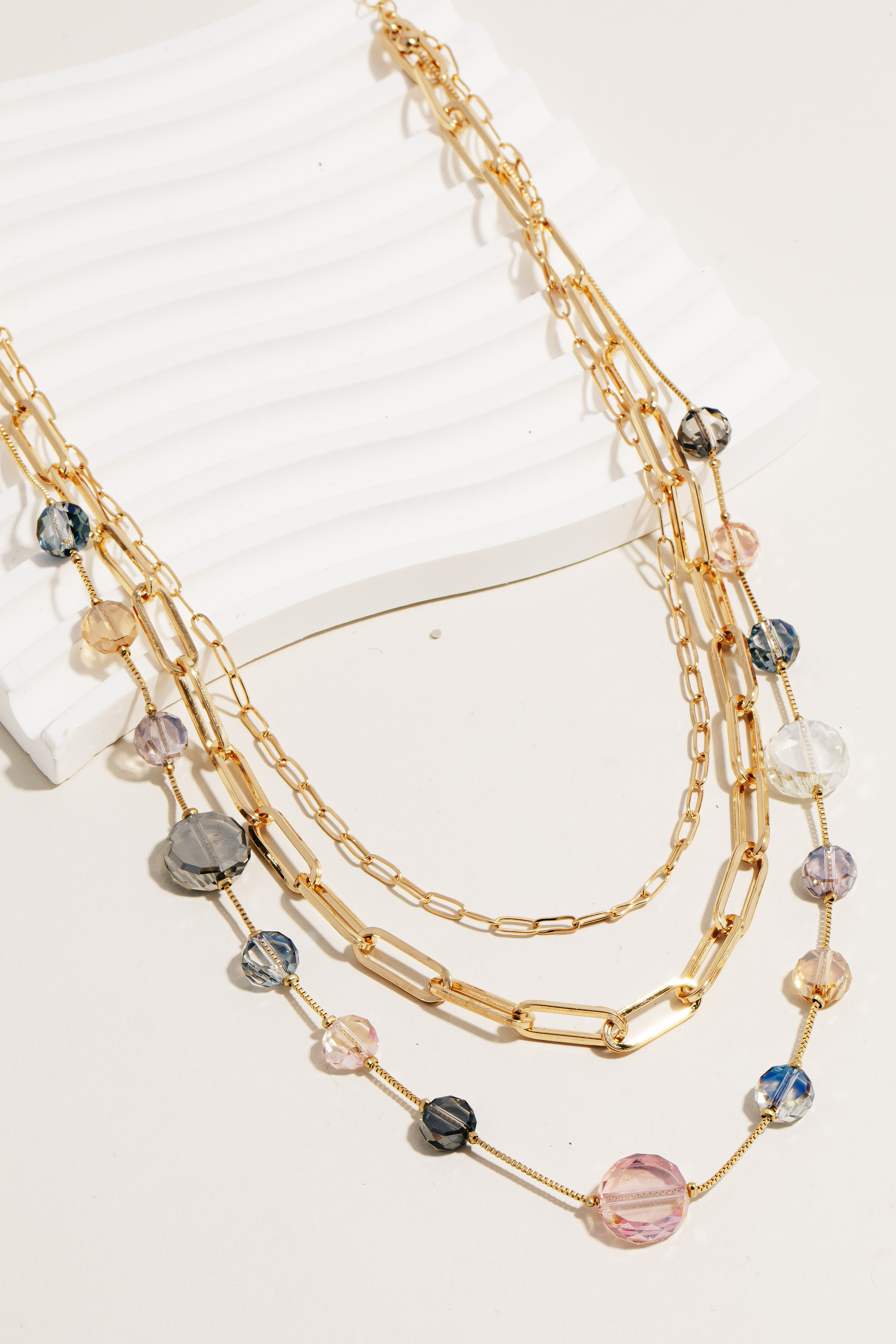 Add some edge to your look, this necklace incorporates a remarkable layered rhinestone and chains design. A stylish accessory that's perfect for complementing any outfit you wear. Available in CRY and LMUL. This item is sold in packs of 1.