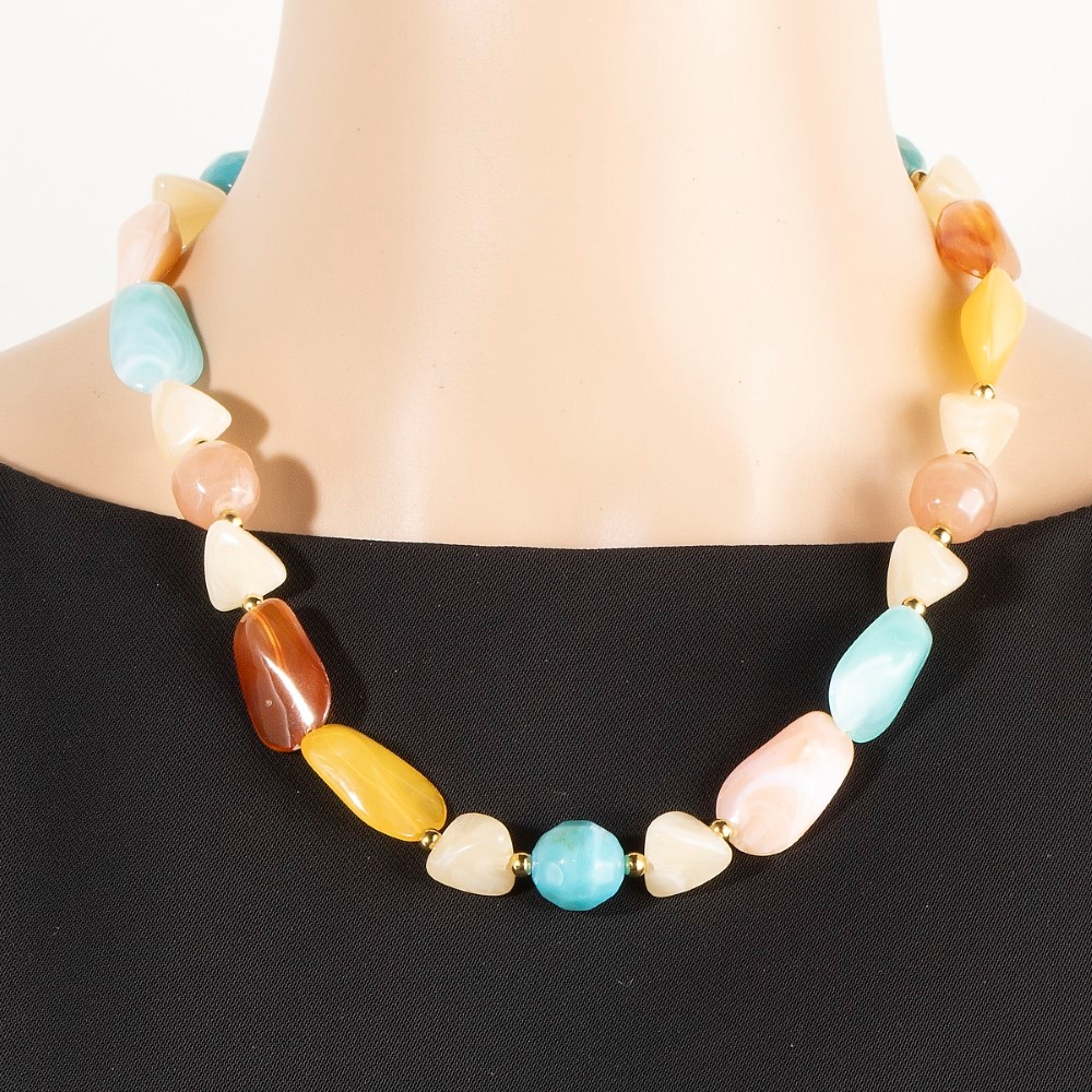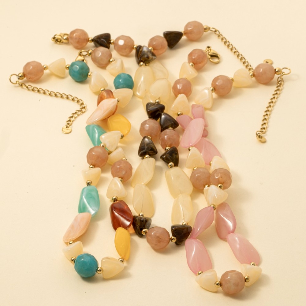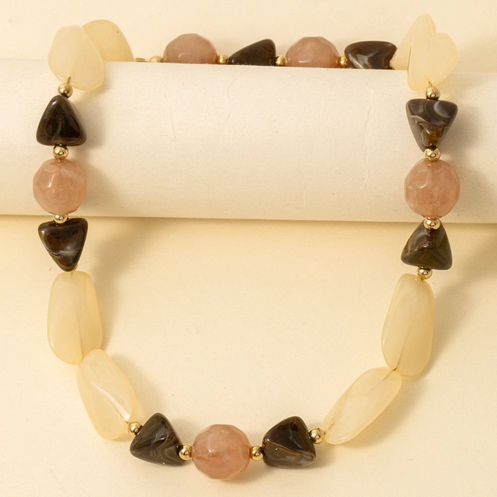 • A true work of art, this necklace includes a stunning marble resin and metallic beads design. Add a dash of sophistication to your look with this versatile necklace, a must-have for fashion enthusiasts. Available in BR, MU, PK. This item is sold in packs of 1.