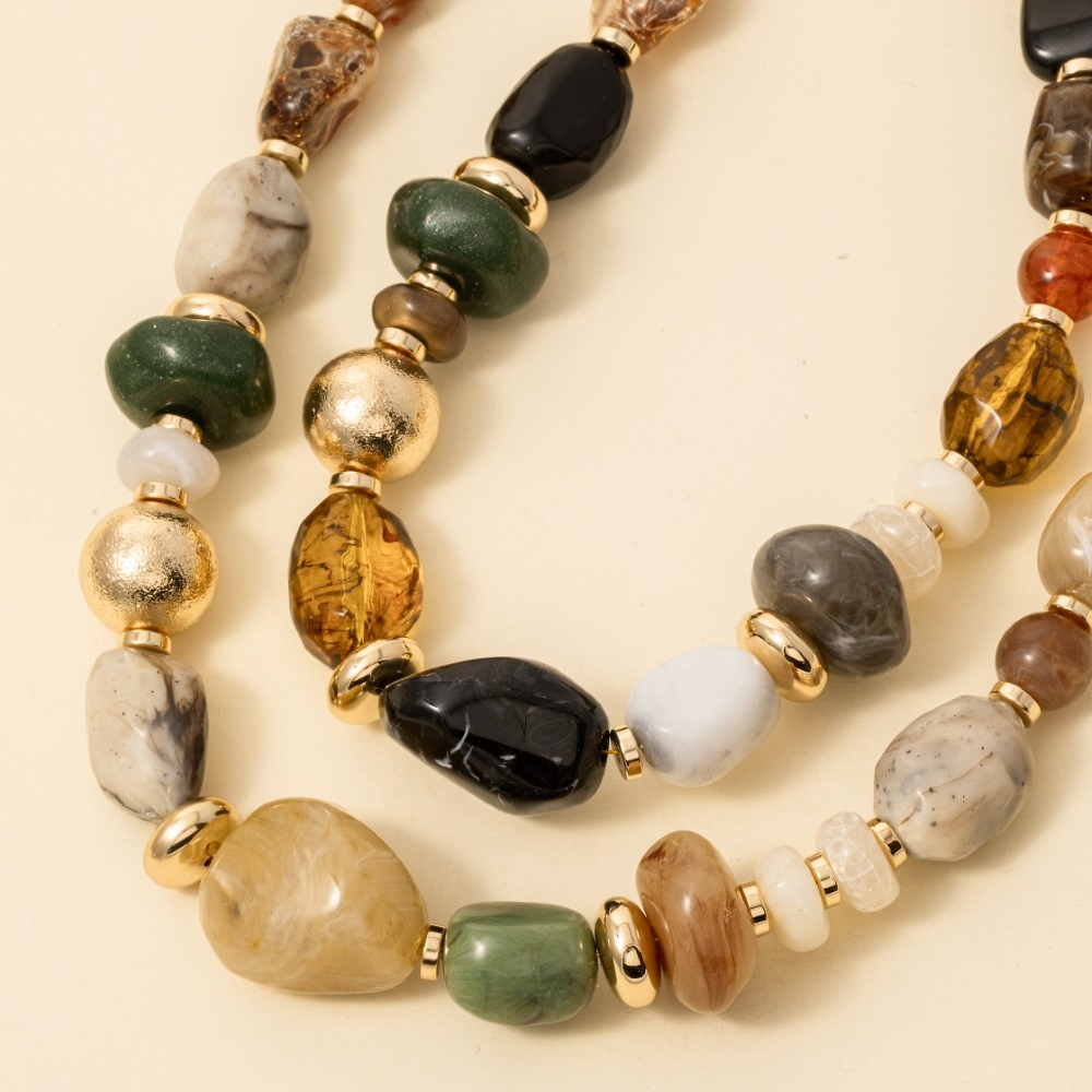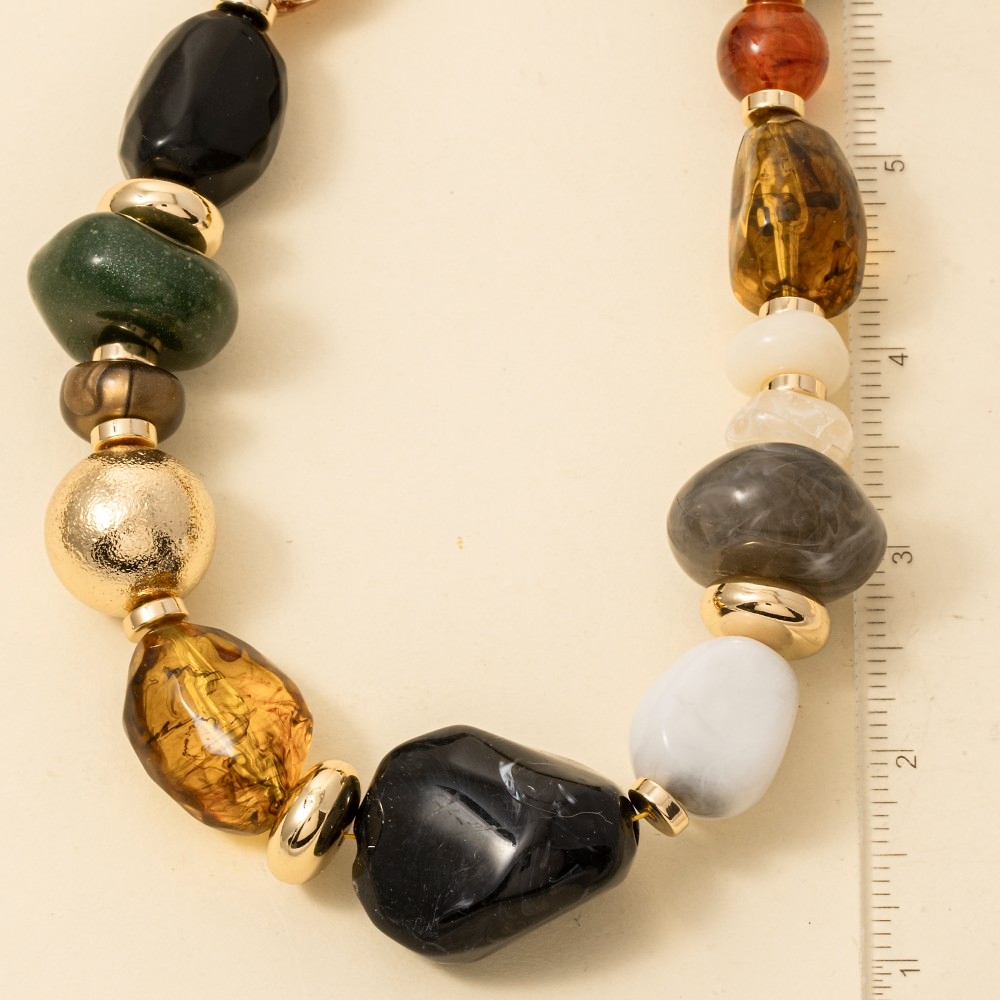 This piece is the perfect way to add some glamour to your look, this necklace carries a charming mixed chunky marble acrylic beads design. This necklace is the perfect way to add a touch of elegance to any outfit. Available in BK, NU. This item is sold in packs of 1.