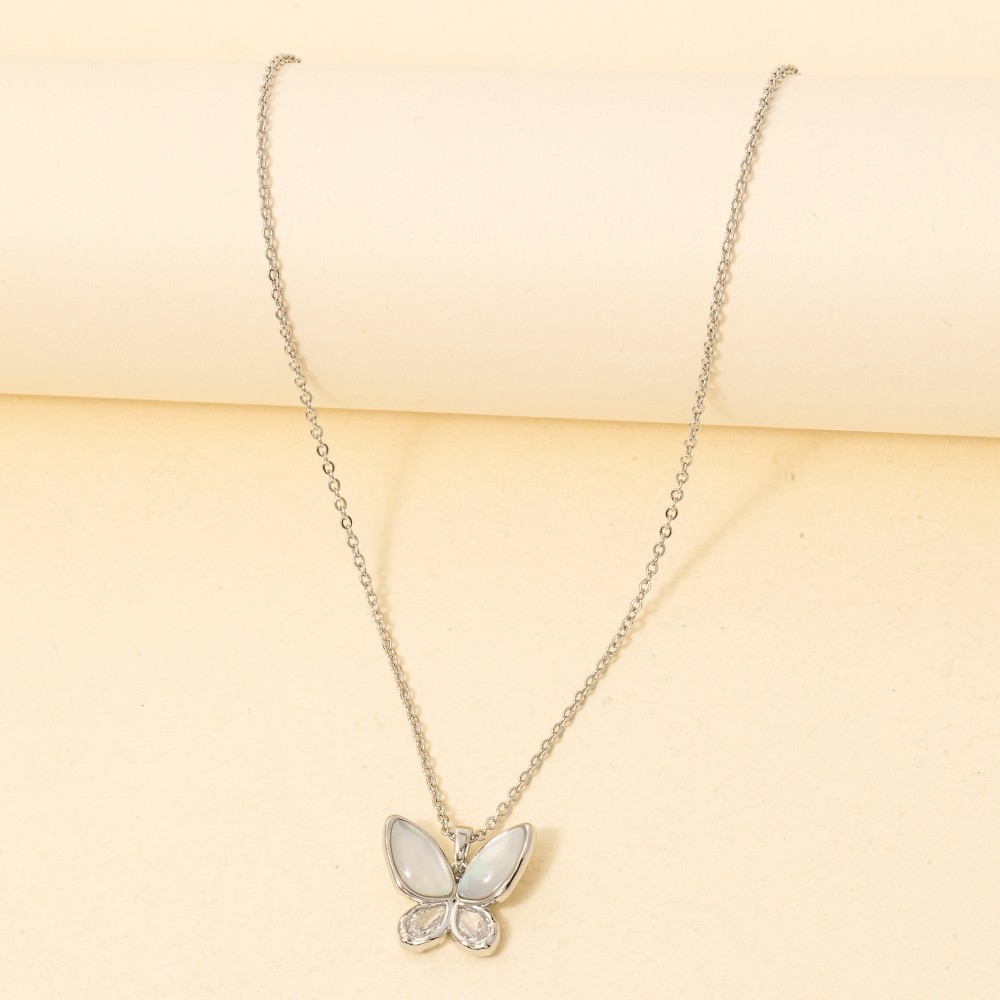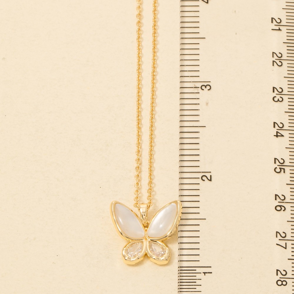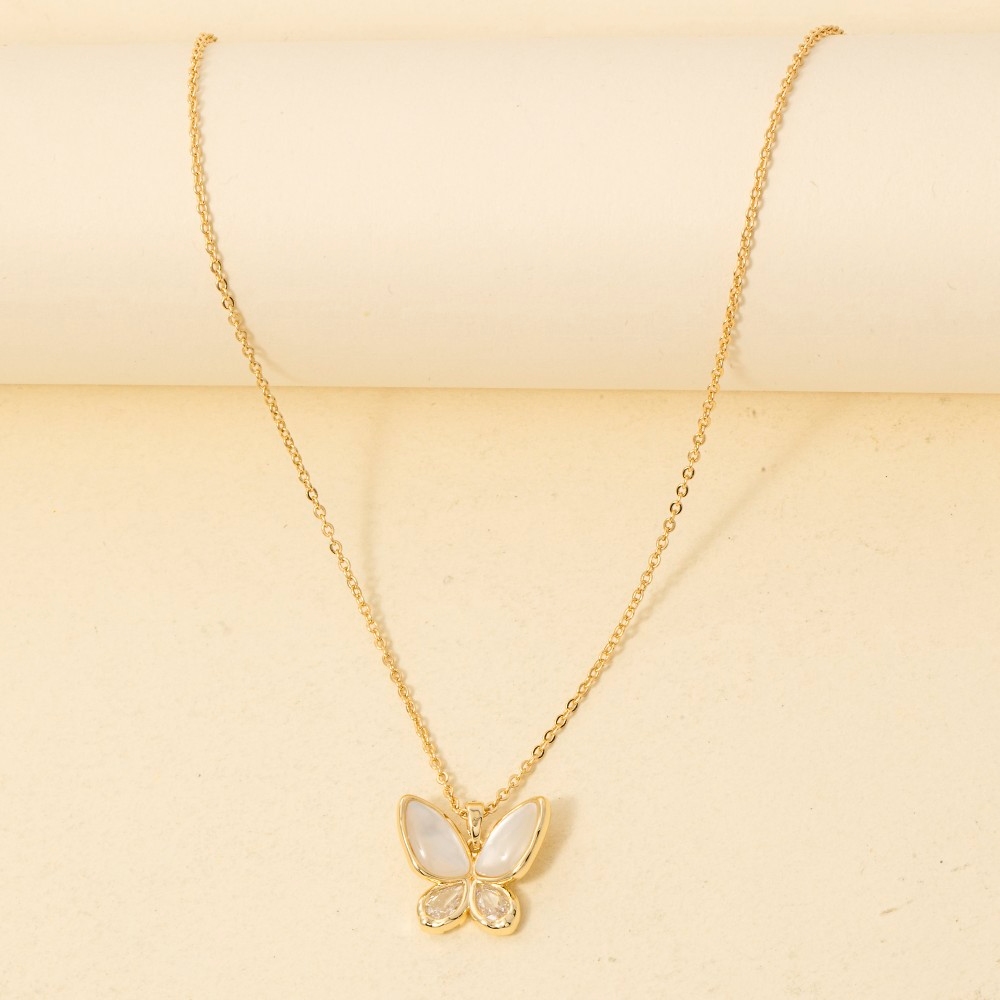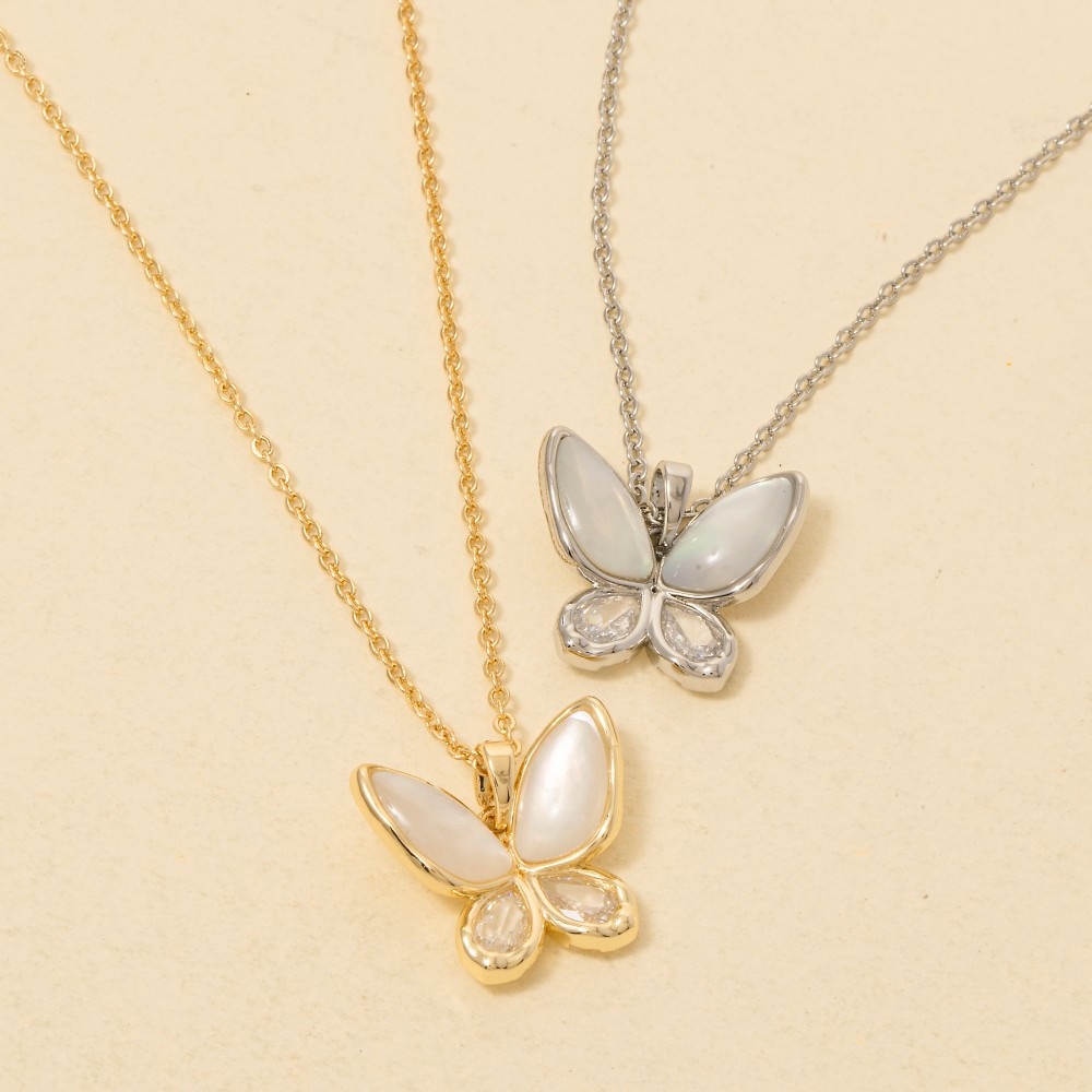 - Perfect for any occasion, this pendant necklace exudes a refined mother of pearl butterfly design. This pendant necklace is ideal for both casual and formal events, adding a touch of sophistication to any outfit. Available in GDCL, SVCL. This item is sold in packs of 1.