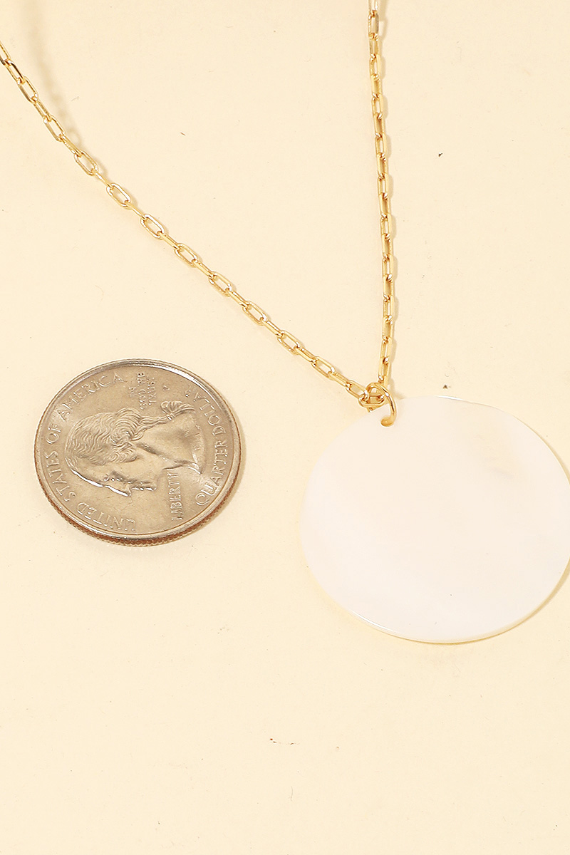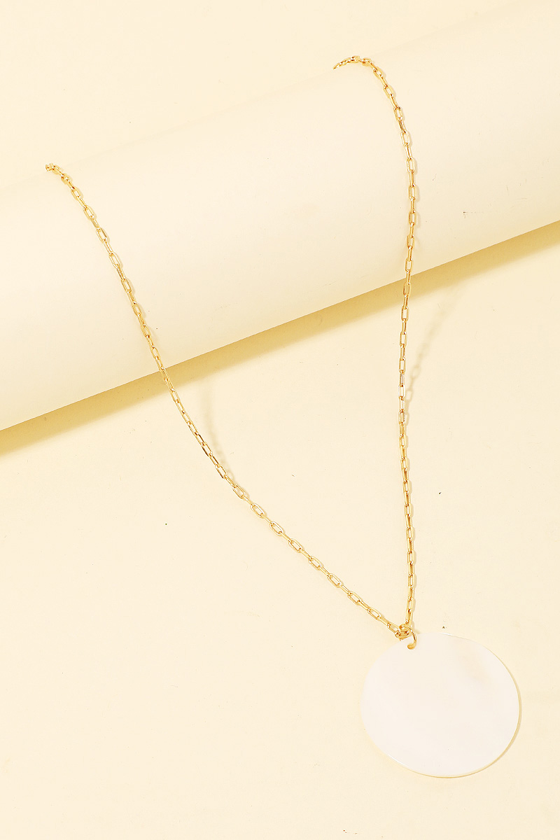 • This piece is both elegant and versatile, this chain necklace displays a unique mother of pearl disc pendant design. A chic and sophisticated accessory that's perfect for dressing up or down. Available in G and S. This item is sold in packs of 1.