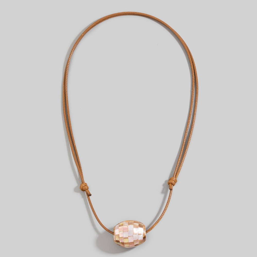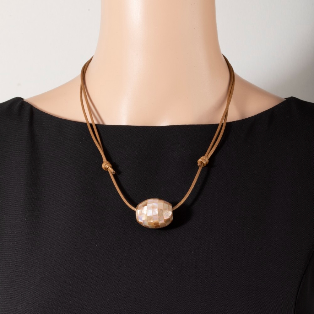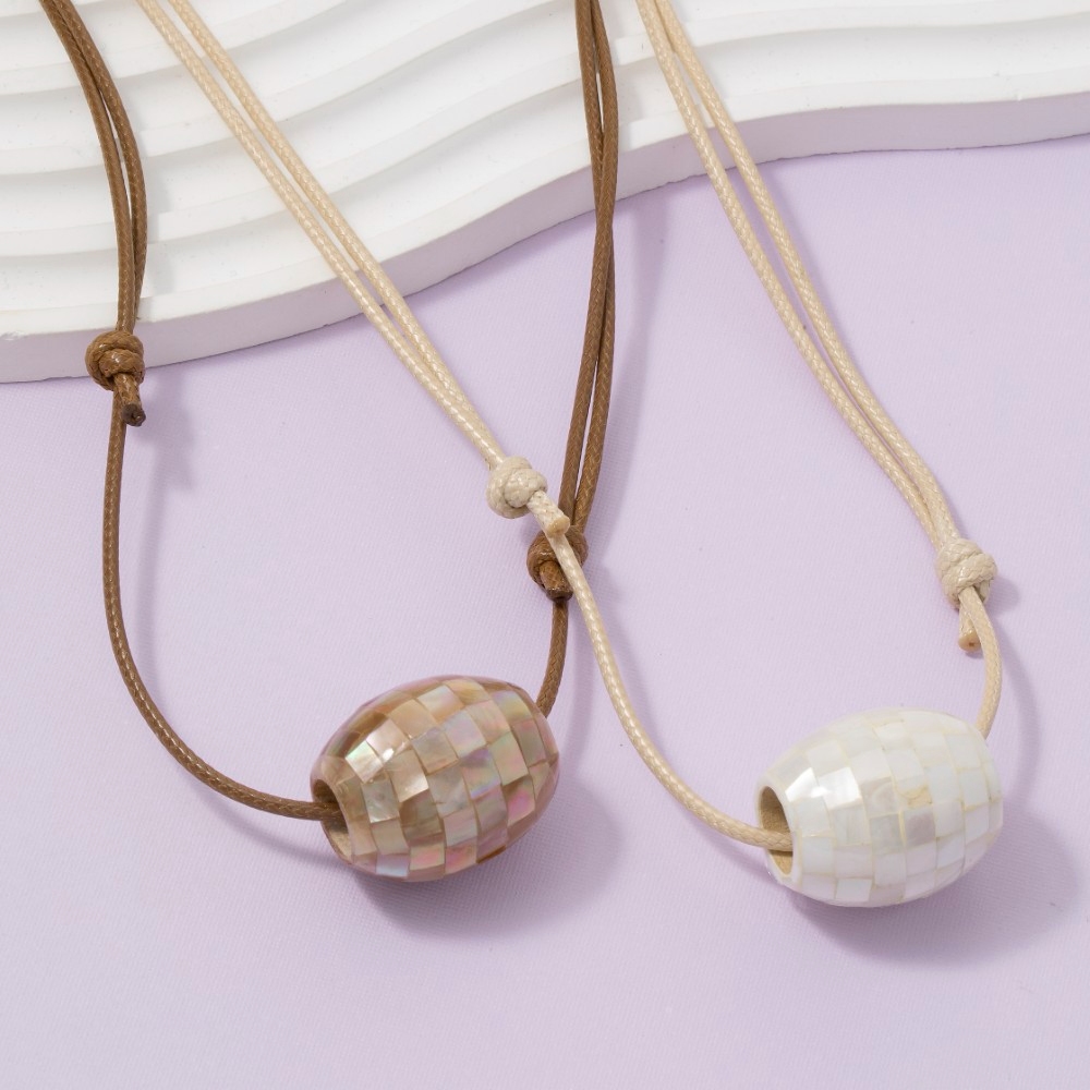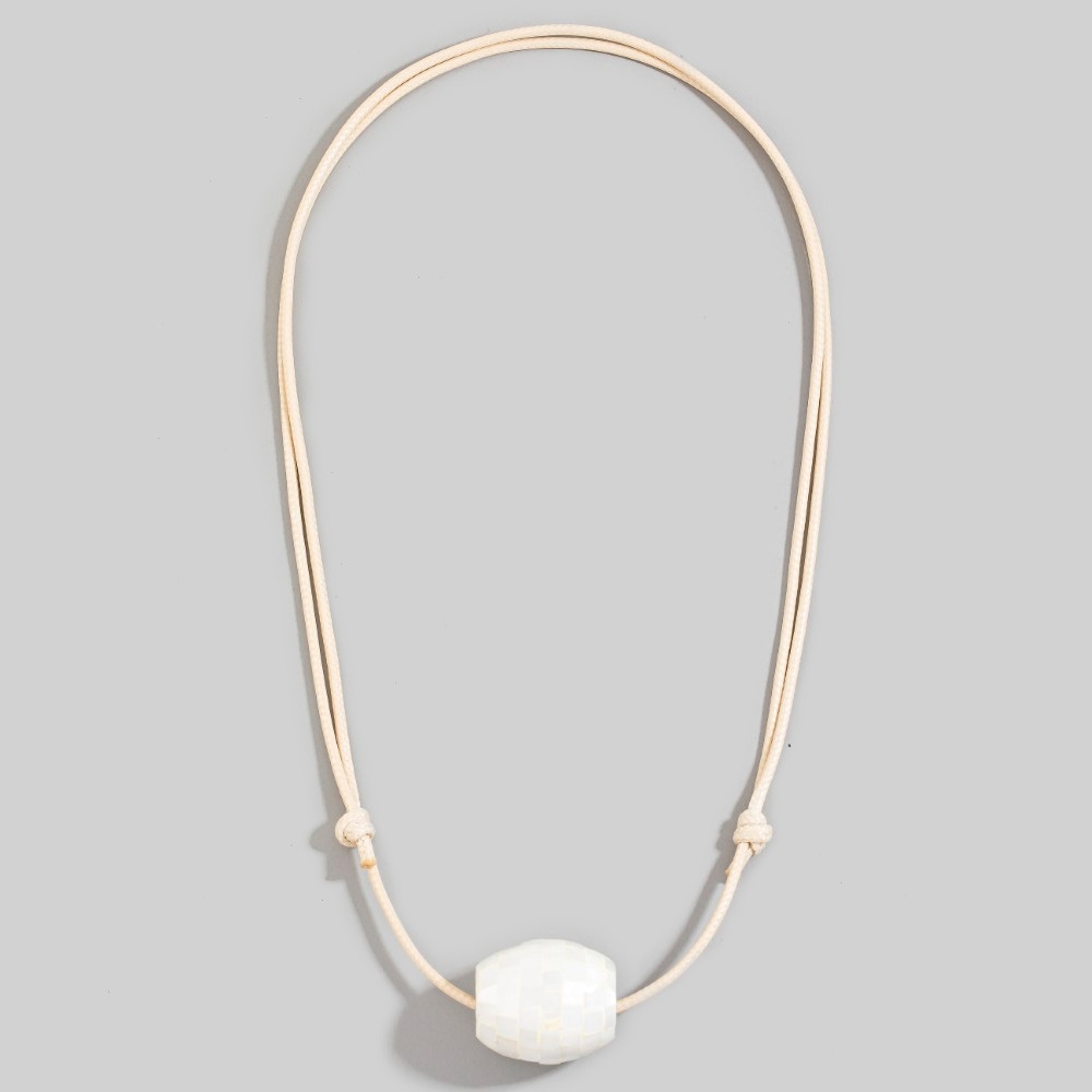 - Bold, daring, and endlessly stylish, this pendant necklace highlights a special mother of pearl mosaic bead pendant adjustable cord necklace design. A stylish pendant necklace that's perfect for complementing your favorite outfit. Available in PK, WH. This item is sold in packs of 1.