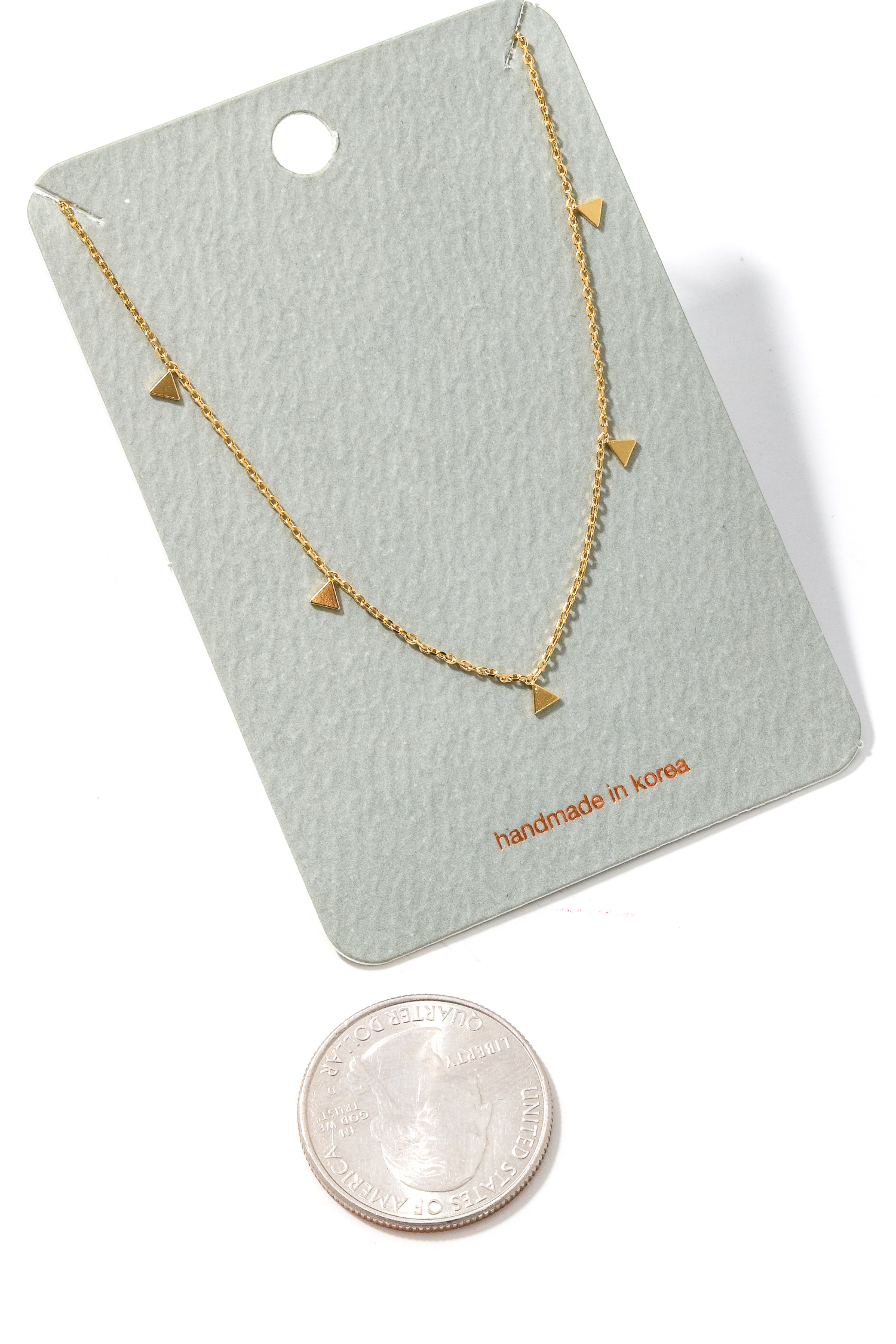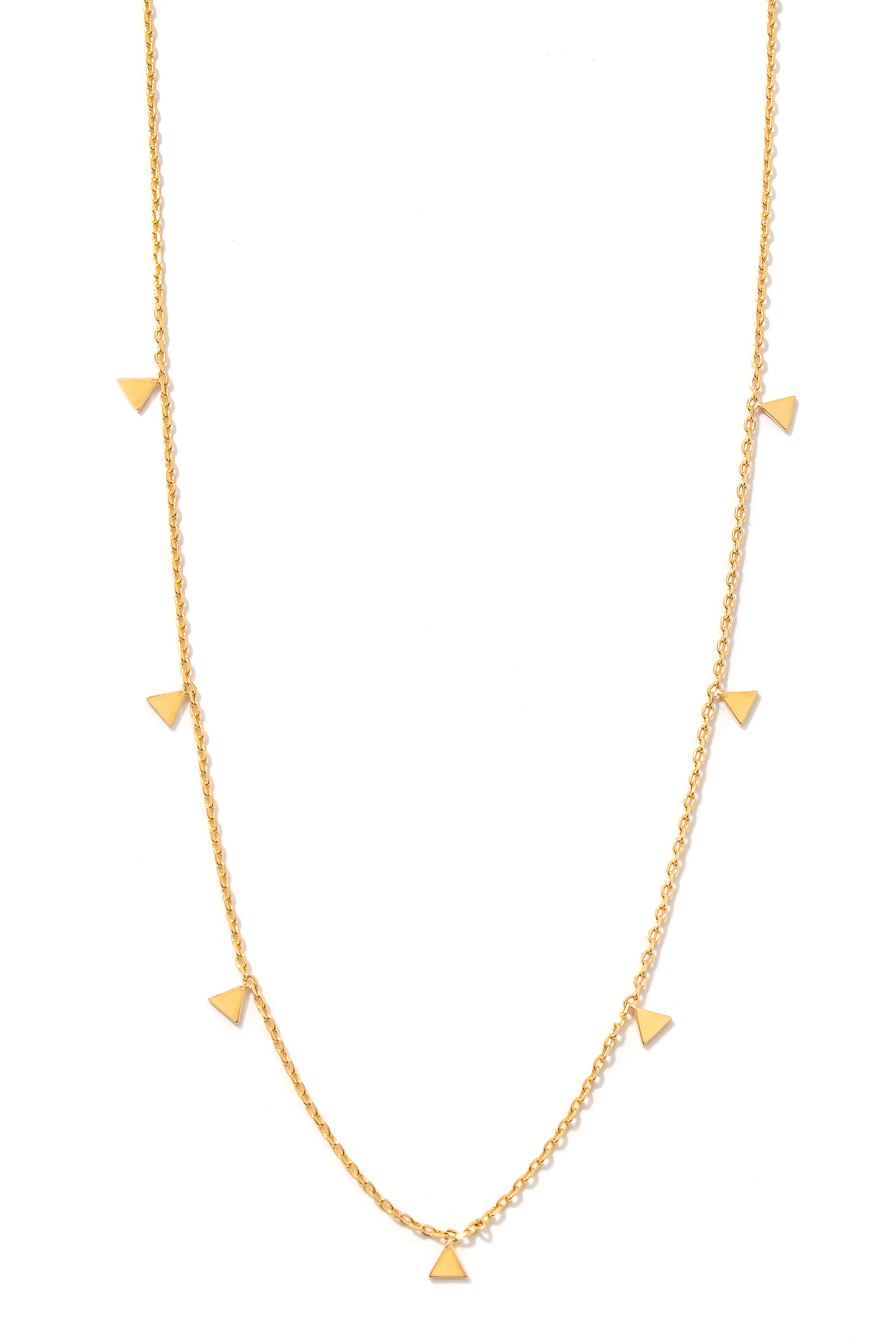 • A stunning must have necklace features a gorgeous multi triangle charm chain necklace design. A chic must have for this fall season! Available in G and S.