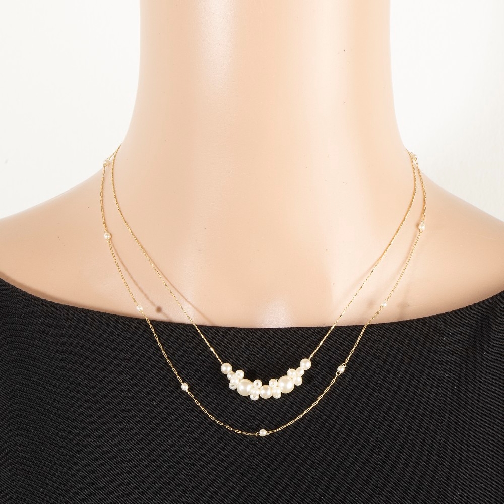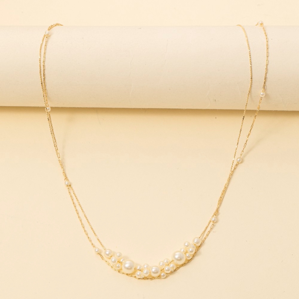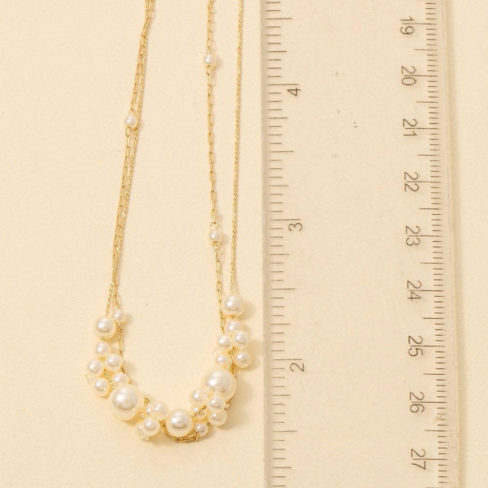 A versatile and stylish addition to any wardrobe, this necklace features a distinct pearl bead clusters layered dainty chains design. Add some personality to your outfit with this stylish necklace. Available in G. This item is sold in packs of 1.