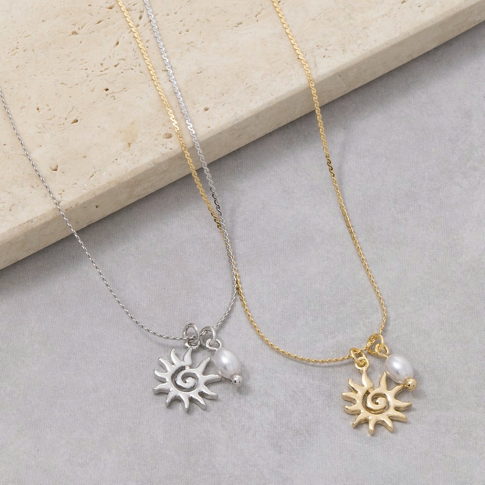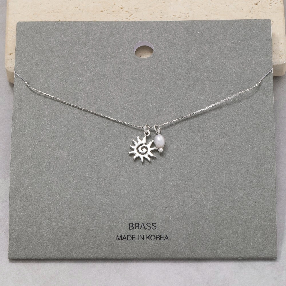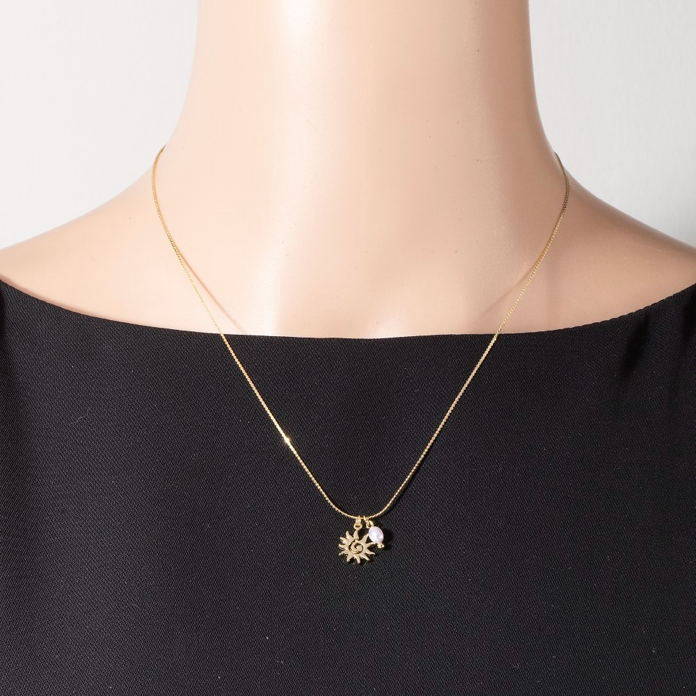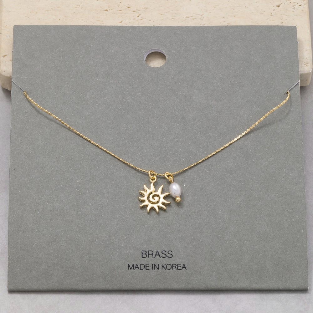 A timeless piece that you'll wear for years to come, this pendant necklace radiates a sleek pearl and spiral sun pendants necklace design. A must-have pendant necklace for anyone who loves to add some flair to their outfits. Available in GDCRM, RHCRM. This item is sold in packs of 1.