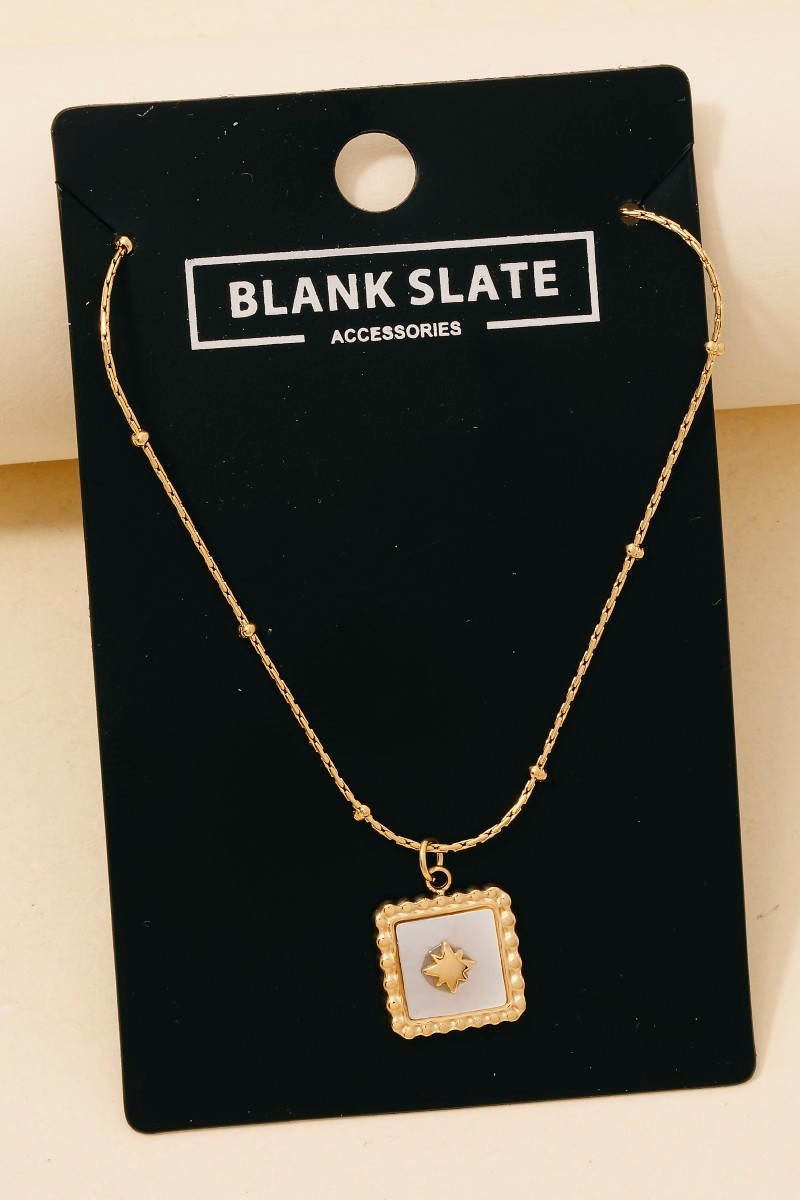 - A modern classic, this necklace emanates an elegant stainless steel north star square pendant design. This item is ideal for those who want to add some personality to their wardrobe without being too bold. Available in G. This item is sold in packs of 1.