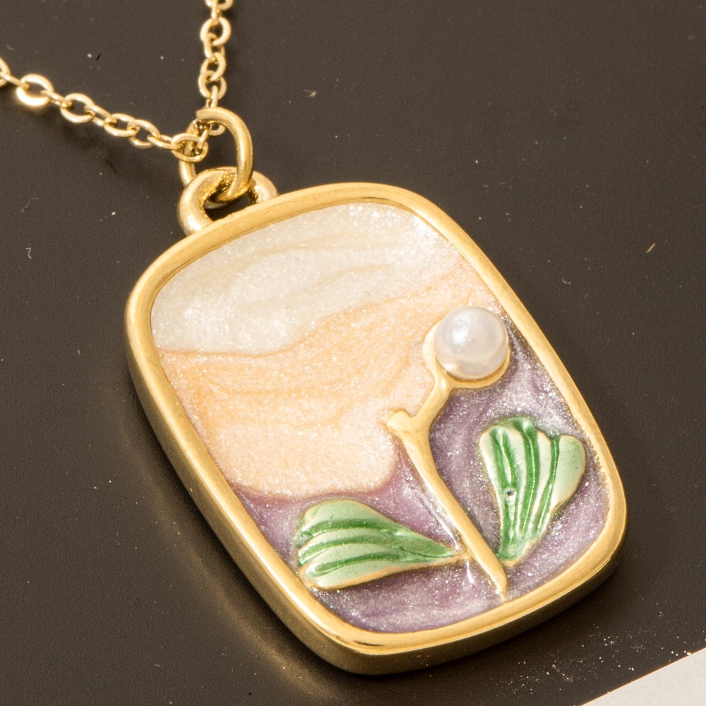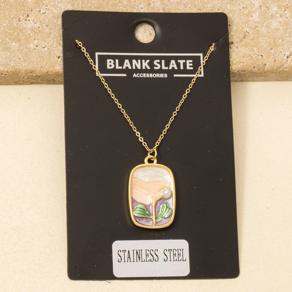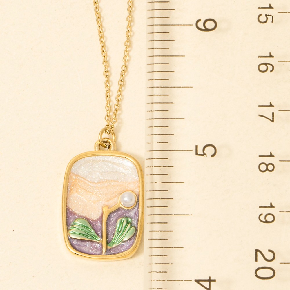 - A must-have for any fashion-forward individual, this necklace brings a one-of-a-kind stainless steel pearl & glitter rectangle pendant design. A must-have necklace that effortlessly enhances your style, no matter the occasion. Available in PU. This item is sold in packs of 1.
