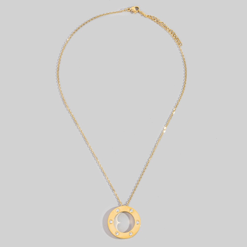 • This pendant necklace is made with 95% Stainless Steel 5% Rhinestone.