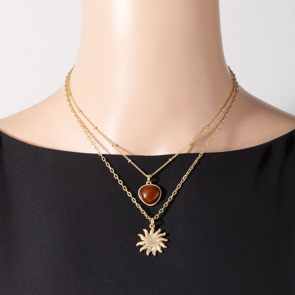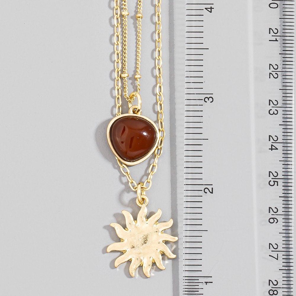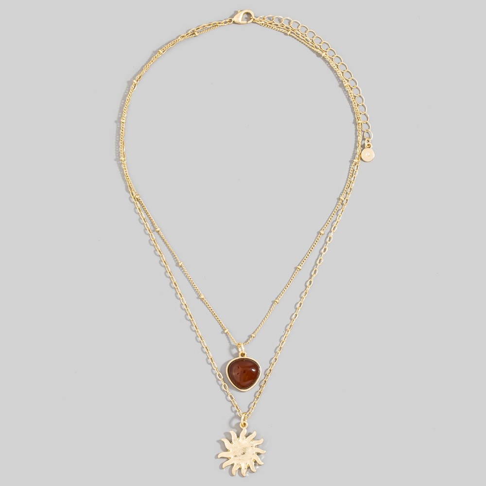 The perfect way to elevate any outfit, this pendant necklace offers a remarkable stone and sun pendants layered chains necklace design. Make a lasting impression with this versatile pendant necklace, a subtle yet impactful addition to your fashion repertoire. Available in WGBRW. This item is sold in packs of 1.