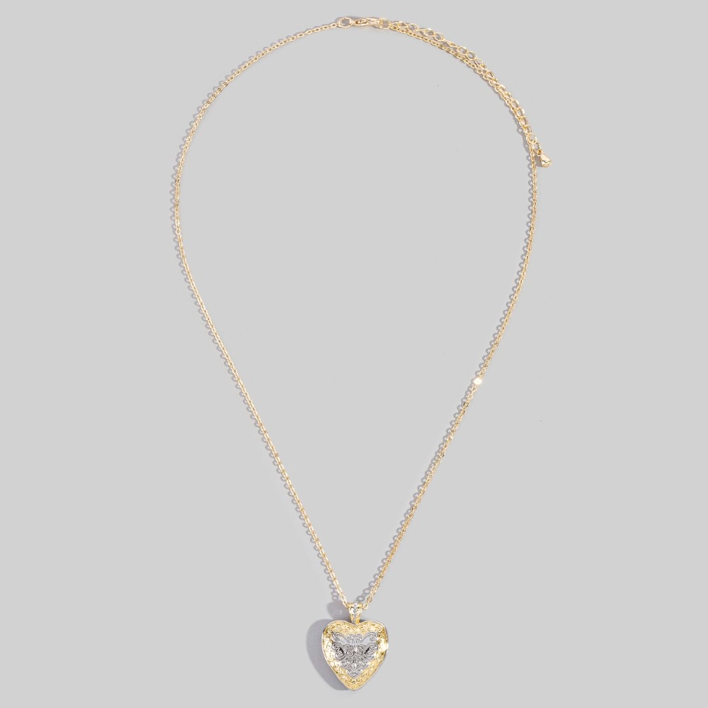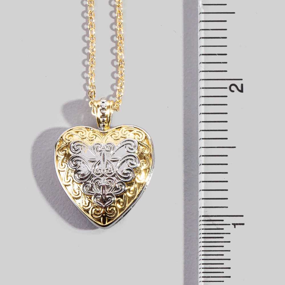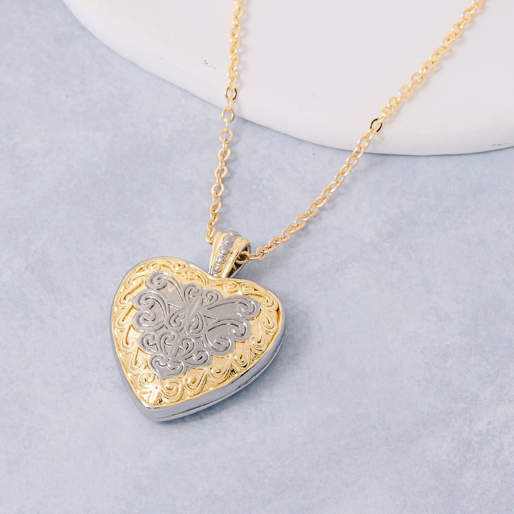 Add some edge to your wardrobe, this pendant necklace showcases an alluring two tone filigree heart design. A perfect addition to your wardrobe that effortlessly enhances your style. Available in K. This item is sold in packs of 1.