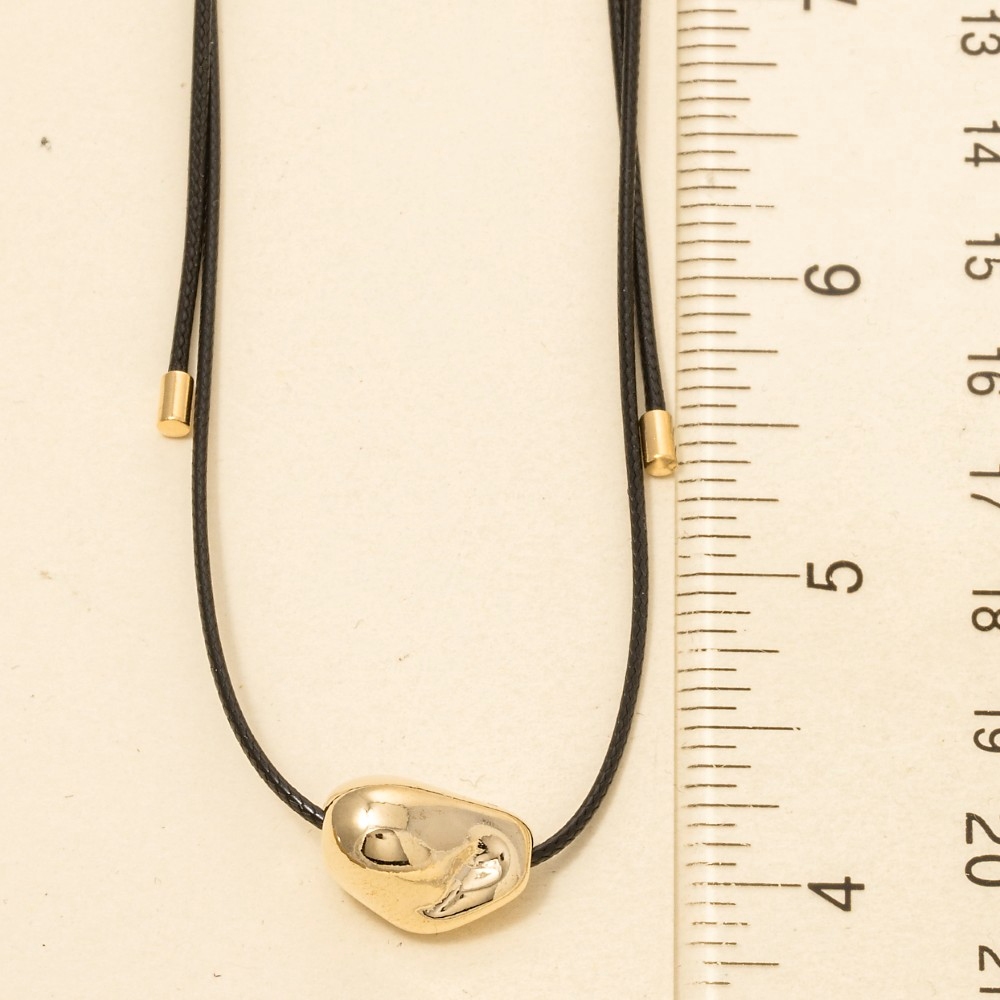 • Perfect for any fashion-forward individual, this necklace incorporates a remarkable warped metallic pendant adjustable cord design. Perfect for adding some texture and dimension to any outfit, this necklace is a must-have. Available in G. This item is sold in packs of 1.