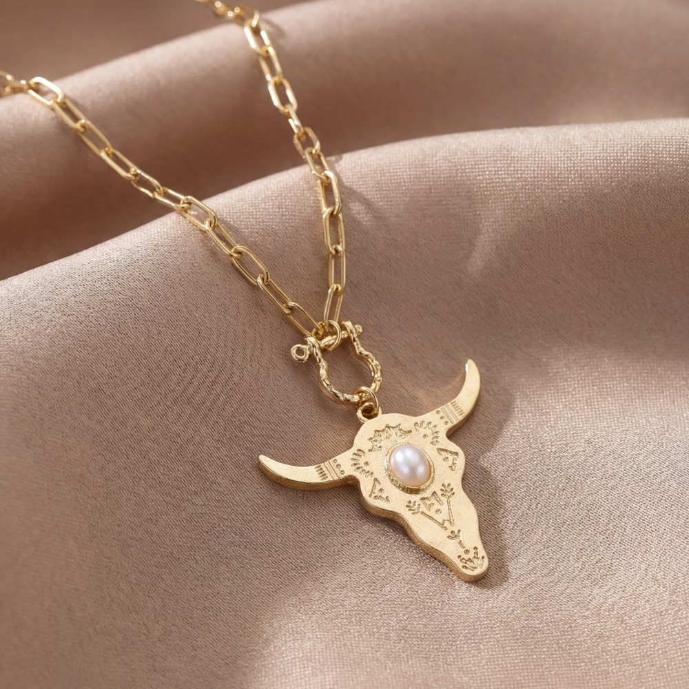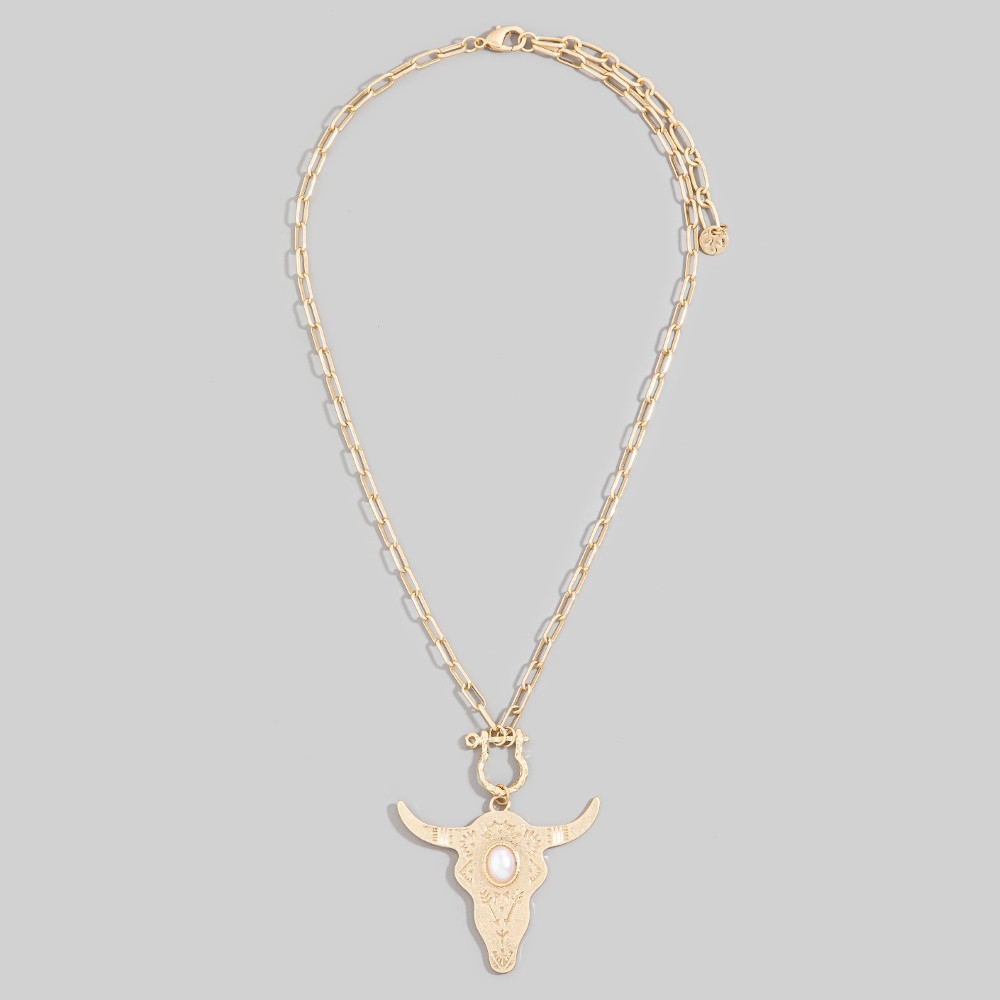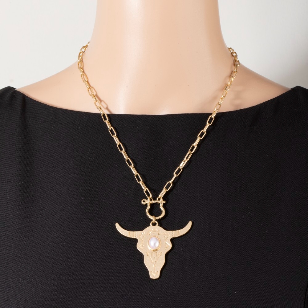 • Add a touch of luxury to any outfit, this pendant necklace presents a striking oval pearl stud bullhead design. Elevate your style effortlessly with this versatile pendant necklace, enhancing the appeal of any ensemble. Available in WG. This item is sold in packs of 1.