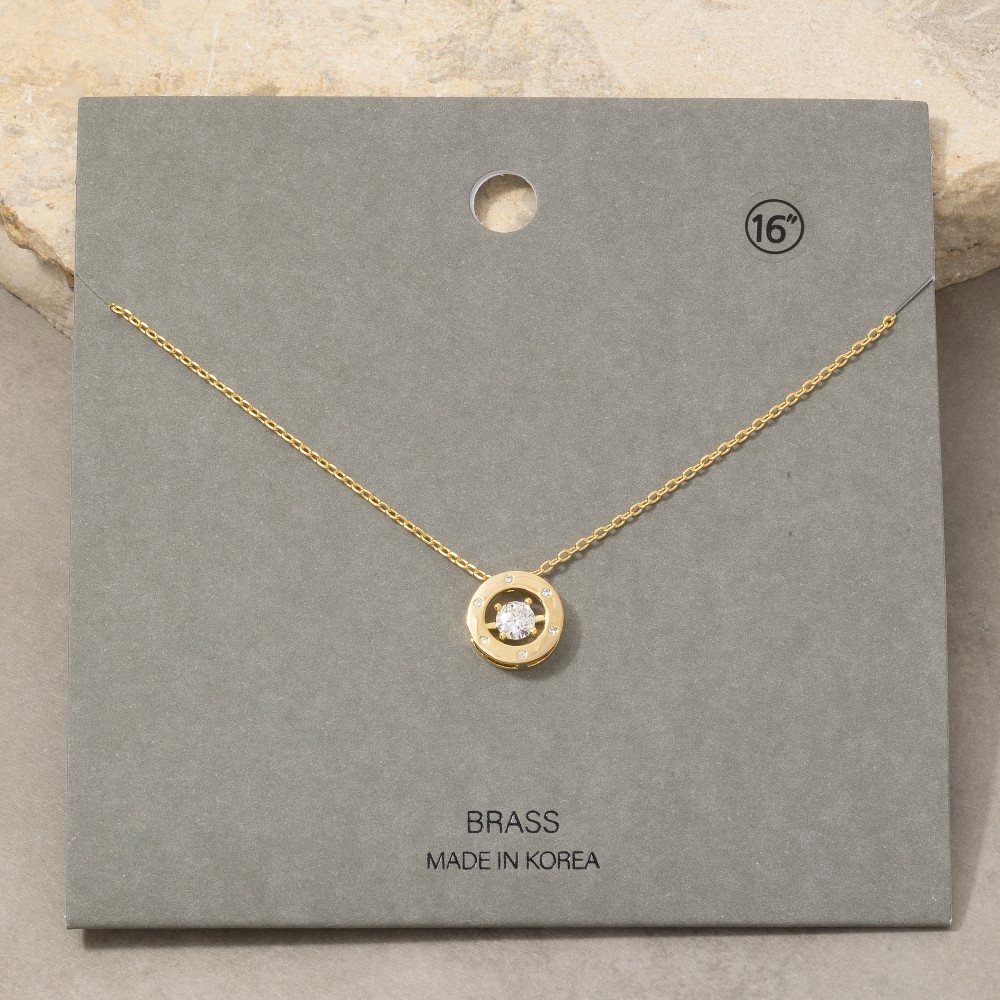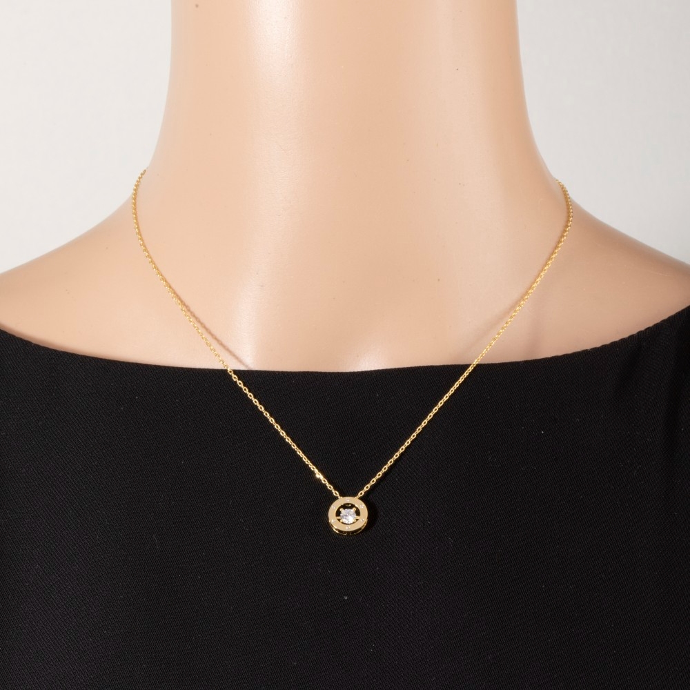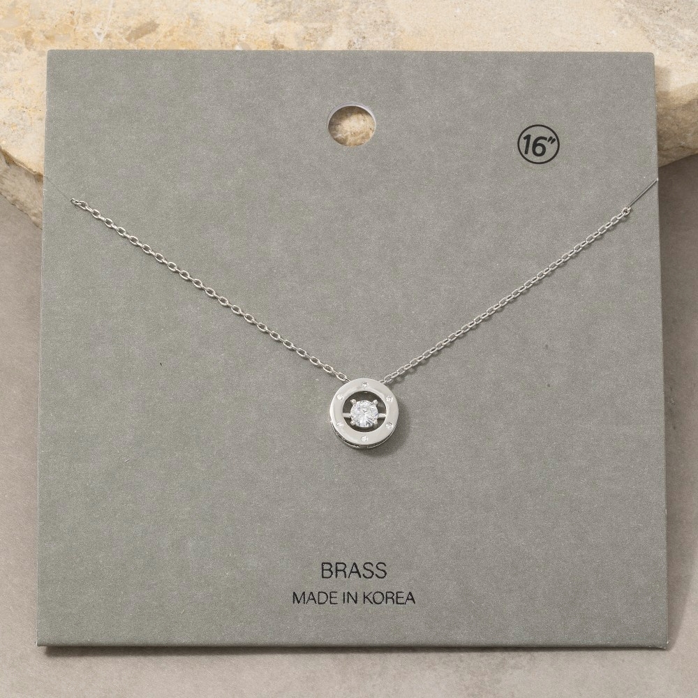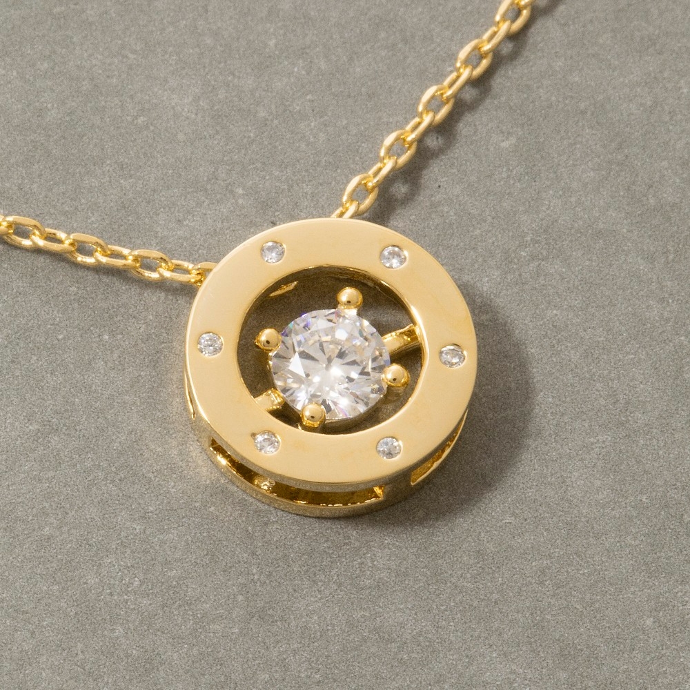 This pendant necklace is made with 95% Brass and 5% Cubic Zirconia.