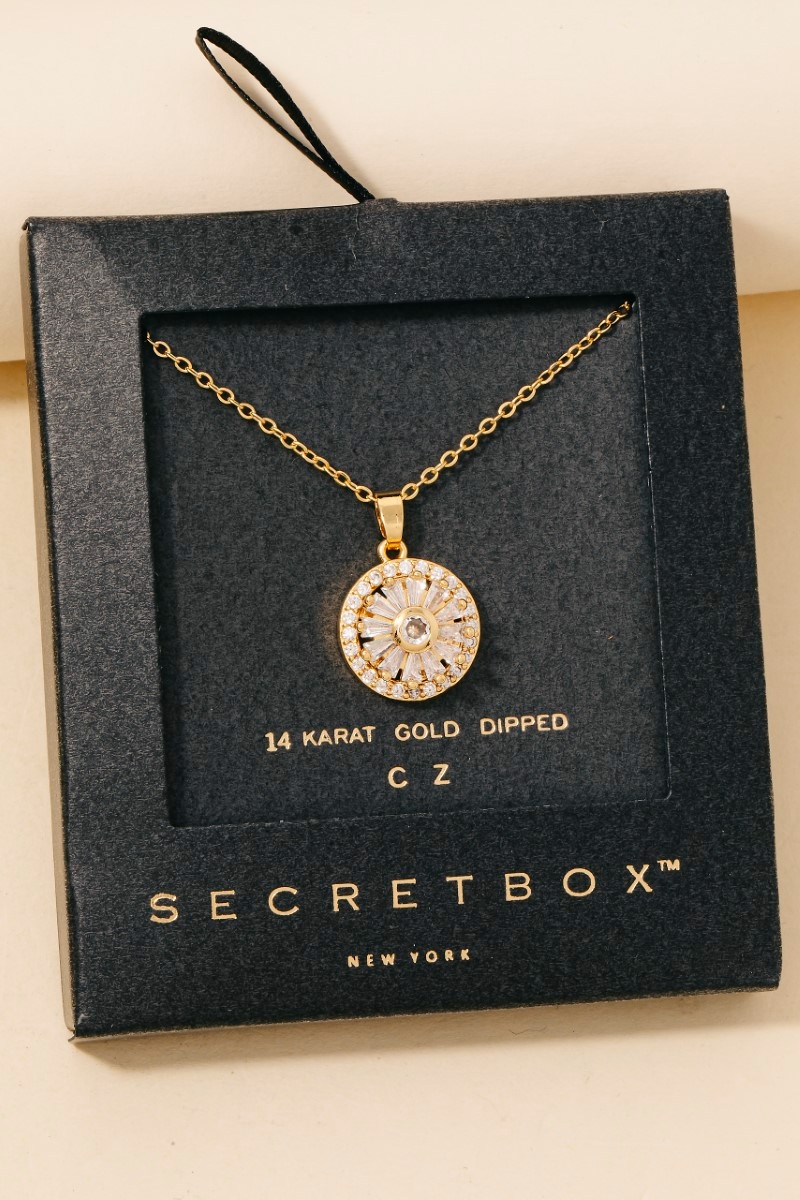 This piece is the perfect way to add some glamour to your look, this necklace boasts a magnificent gold dipped cubic zirconia halo set sun pendant design. This item is perfect for anyone who loves to accessorize and add some personality to their outfits. Available in GD. This item is sold in packs of 1.