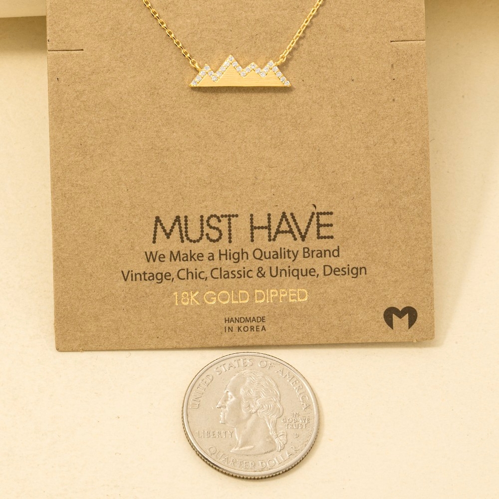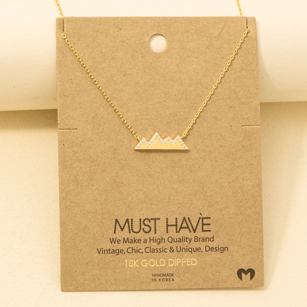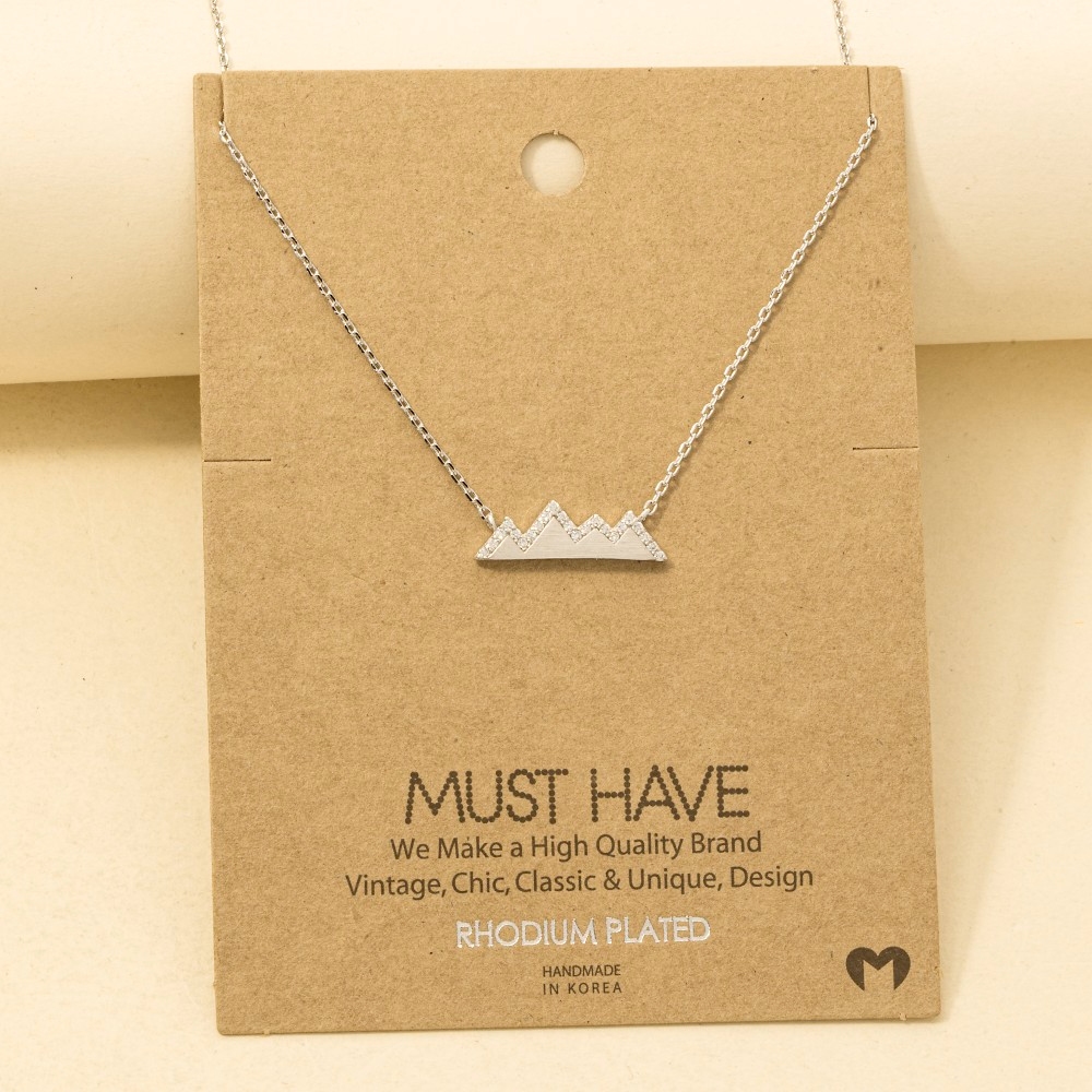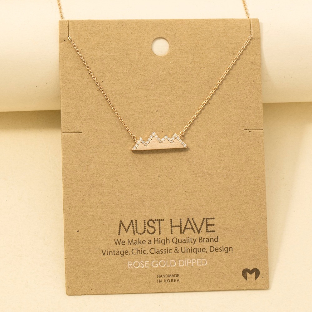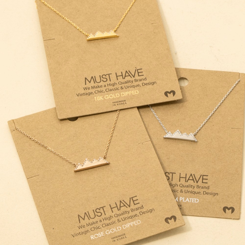 • Add a touch of elegance and glamour to your look, this trending necklace flaunts a luxurious studded mountain range necklace design. A versatile trending necklace that's perfect for any occasion, adding a touch of elegance and style to any outfit. Available in G, R, S. This item is sold in packs of 1.