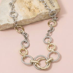 Gold Dipped Two-Tone Rope & Circle Link Chain Necklace
