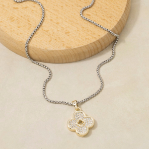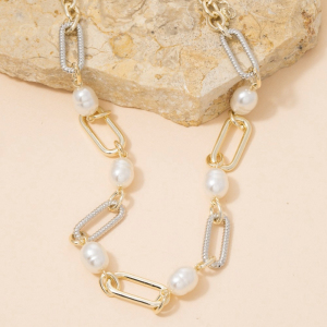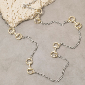 Two-Tone Horsebit Station Wheat Chain Necklace