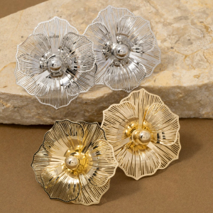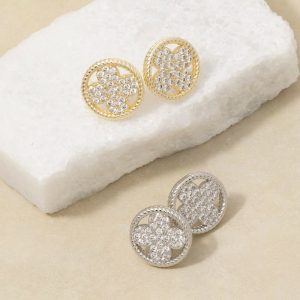 Gold Filigree Daisy Flower Stud Earrings With Crystal Center
