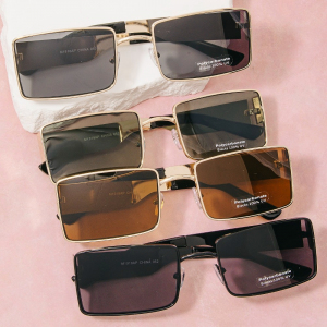 Slim Narrow Rectangle Triple Dot Detail Sunglasses