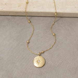 Gold Dipped Cz Ring Bead Pendant Necklace